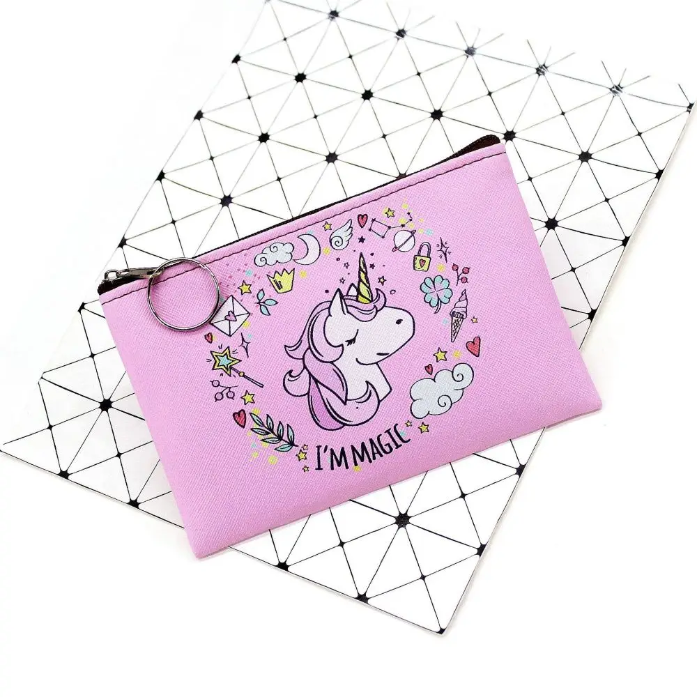 Кошельки для мелочи с мультяшным единорогом, женские Мини-кошельки, милый держатель для карт, дамские сумочки для ключей, кошелек для девочек, детский женский кошелек