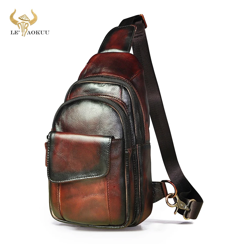 Нагрудная Сумка-слинг 8013 Мужская, роскошная качественная кожаная модная сумочка винного цвета для планшетного ПК 8 дюймов с лямкой через плечо