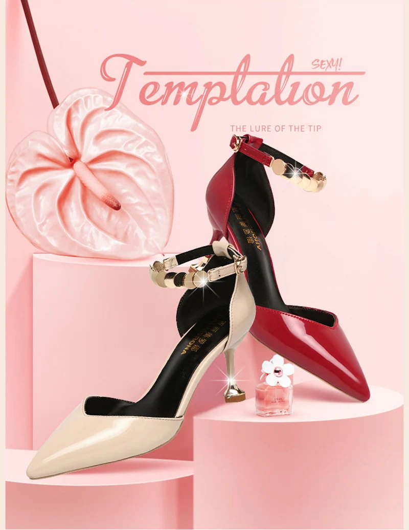 Босоножки женские на высоком каблуке с острым носком, пикантные сандалии с ремешком и пряжкой, Нескользящие босоножки для офиса и свадьбы, красные