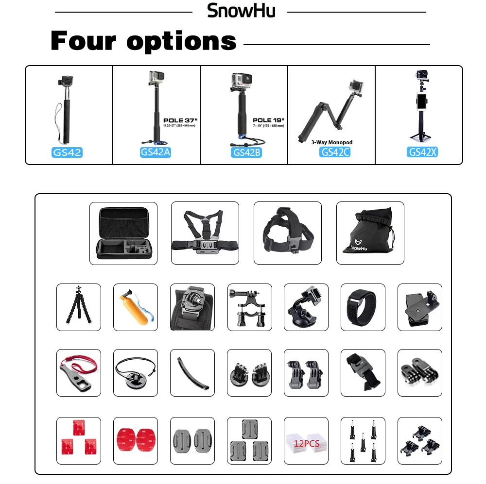 Набор аксессуаров SnowHu для Gopro Hero, ремень для головы, груди + штанга для автоспуска, Go pro Hero 10, 9, 8, 7, 6, для спортивной камеры Yi EKEN H9 GS42