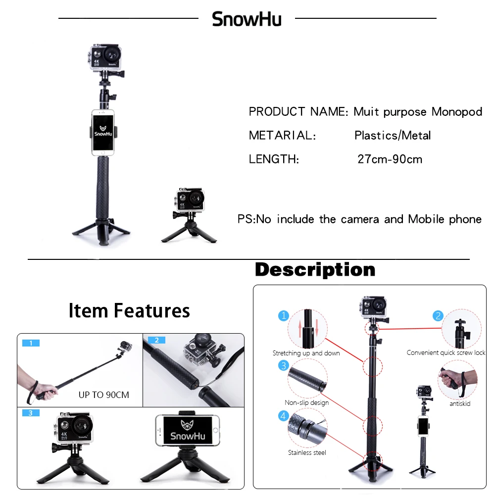 Комплект аксессуаров SnowHu для Gopro 10, Трипод, монопод, нагрудны...