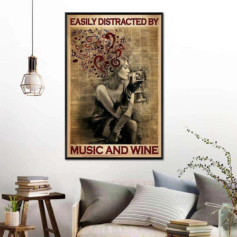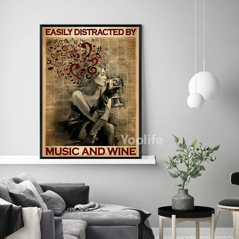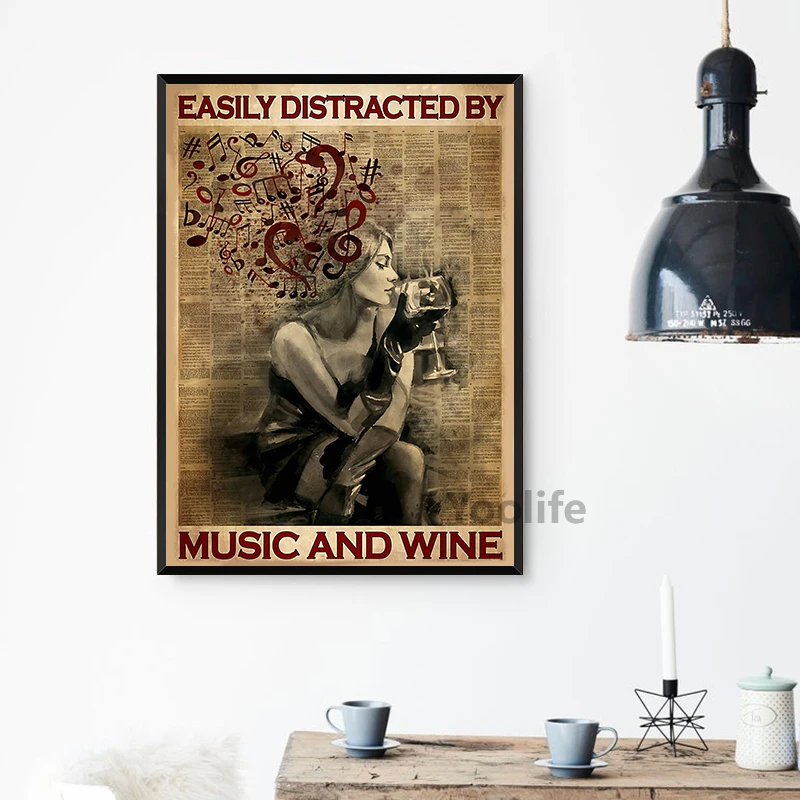 Ноты с птицами, винтажный постер, принты, музыка, настенная живопис...