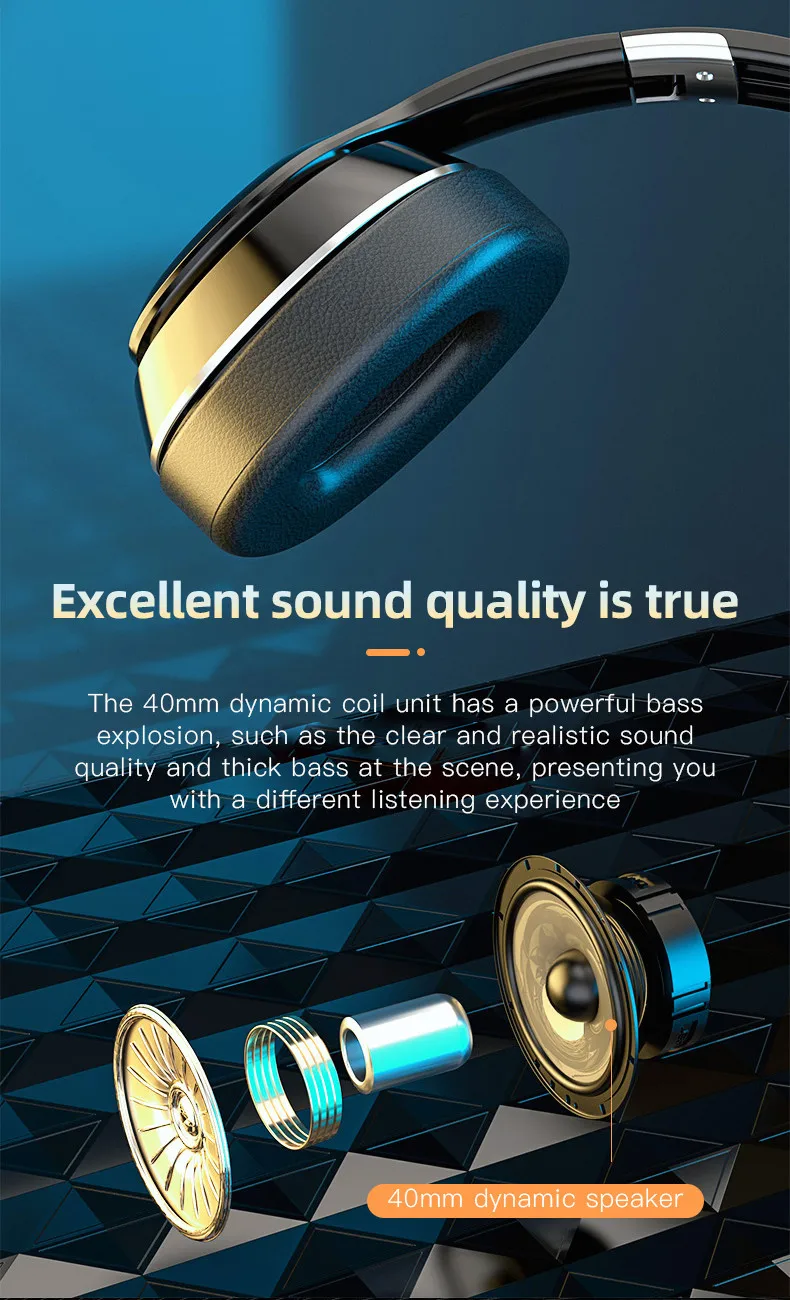 Беспроводные наушники, Bluetooth, складные наушники, поддержка TF-картыFM-радио, стерео гарнитура 8D с HD-микрофоном для телефона, xiaomi, ТВ, ПК