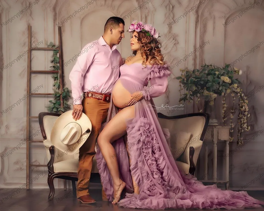 Лавандовое Тюлевое длинное платье для беременных для фотосессии для...