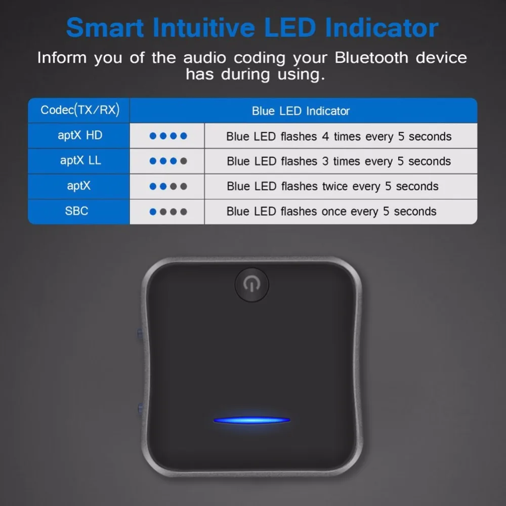 В режиме TX два bluetooth-наушника могут быть сопряжены сразу, чтобы родители могли смотреть в тишине и дать детям необходимый прорыв; В режиме RX два умных устройства могут быть сопряжены для воспроизведения различных песен. Запись 8 устройств и автоматическое повторное сопряжение с существующими парными устройствами.