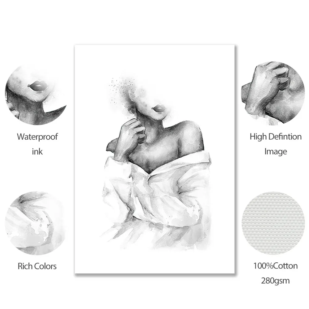 Модная фотография постер женщины скандинавский Холст Картина черная...
