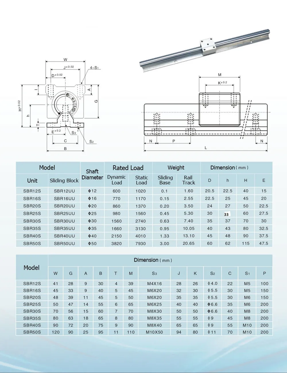 1. Цилиндрическая линейная направляющая SBR/TBR состоит из рельсовой опоры, вала (рельса) и количества блоков. Они предоставляются как единица или как соответствующие компоненты. Все компоненты стандартизированы, чтобы быть полностью взаимозаменяемыми.