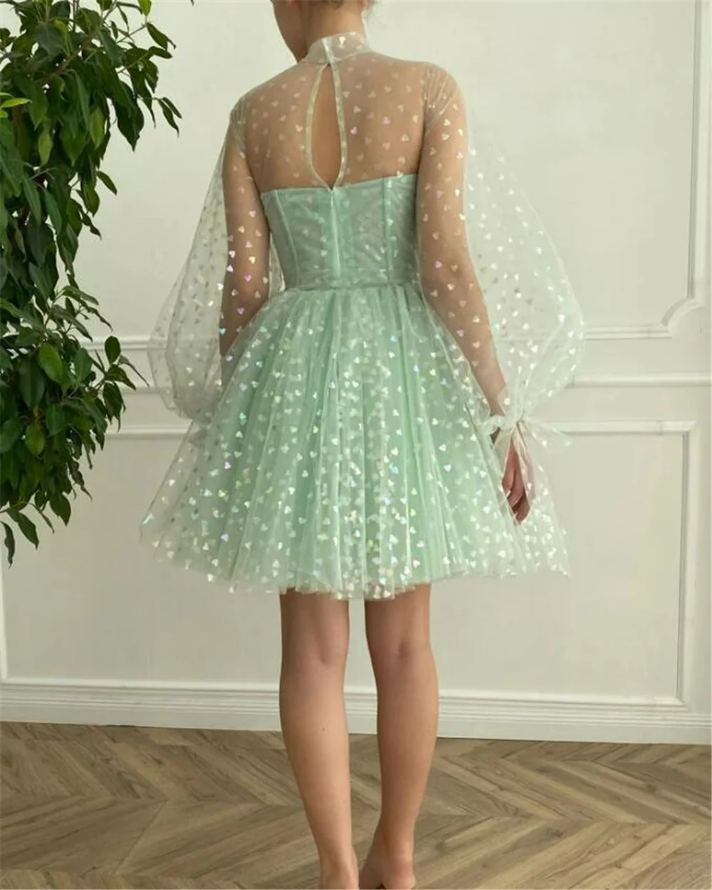 Недорогие платья Sevintage с высокой горловиной, с блестками, мини-...