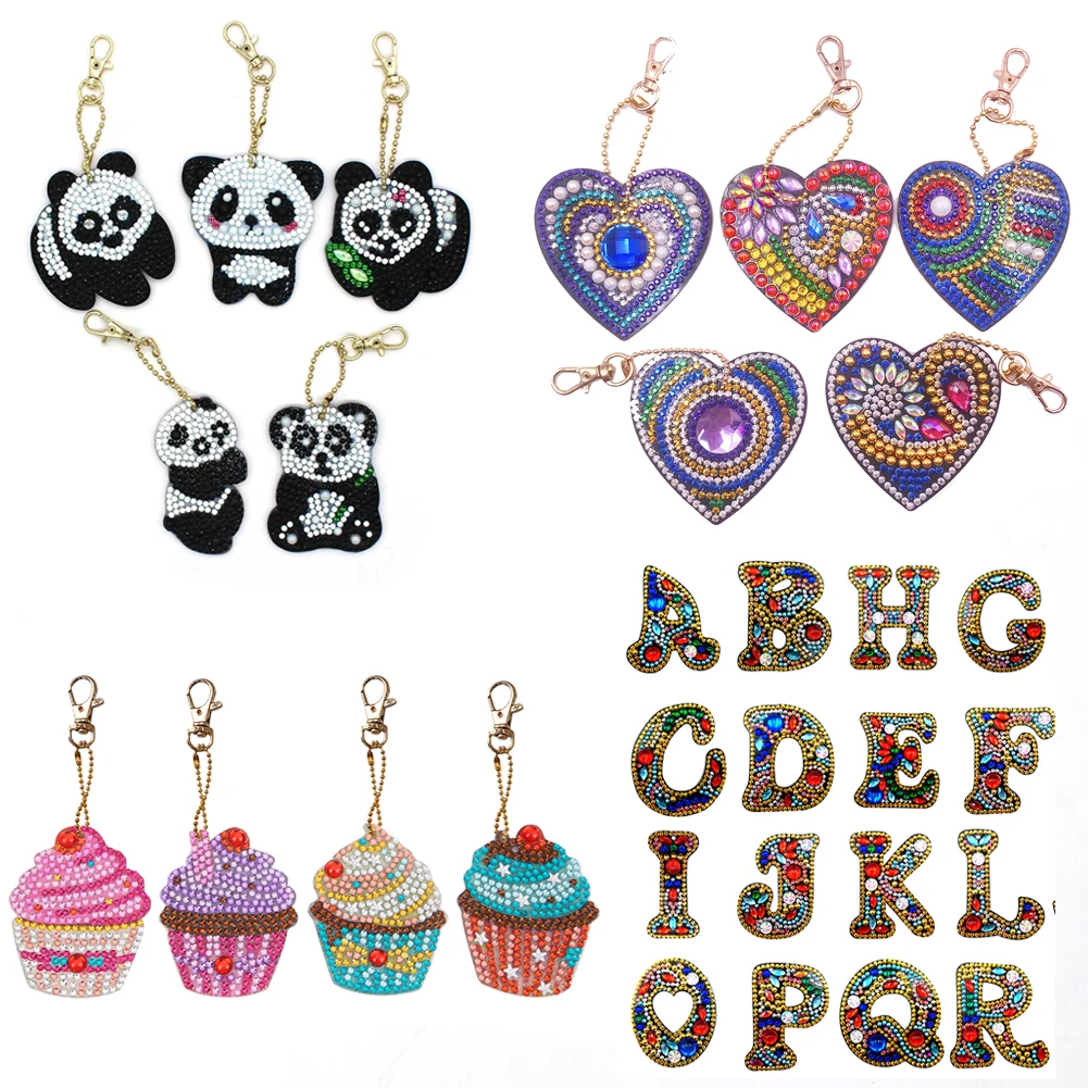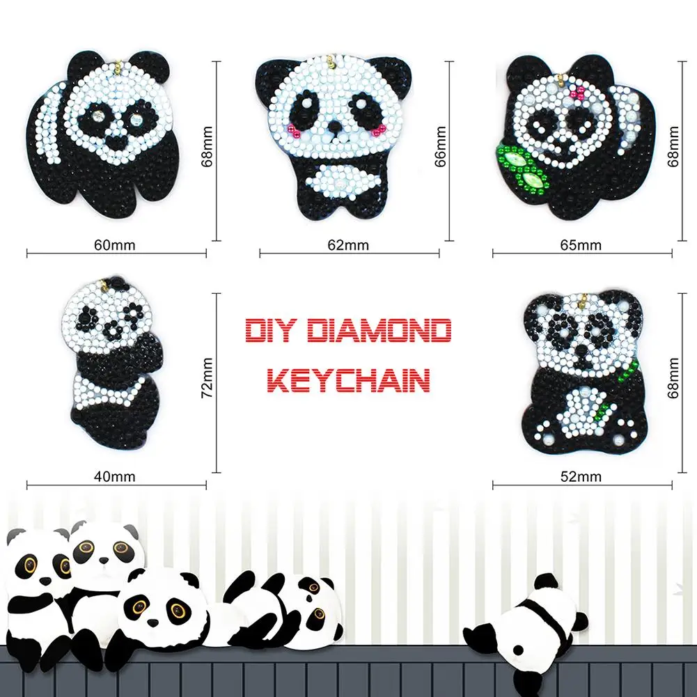 Брелок для ключей сделай сам в виде панды, картина из страз, специальная форма, полная вышивка из страз, для женщин и детей, 5 шт.