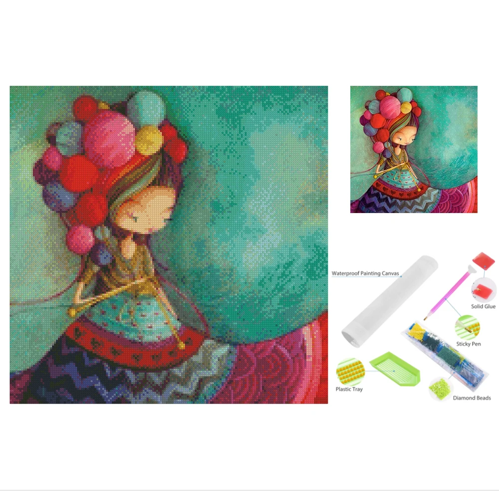 Алмазная живопись высокого качества с изображением девочки, аксессу...