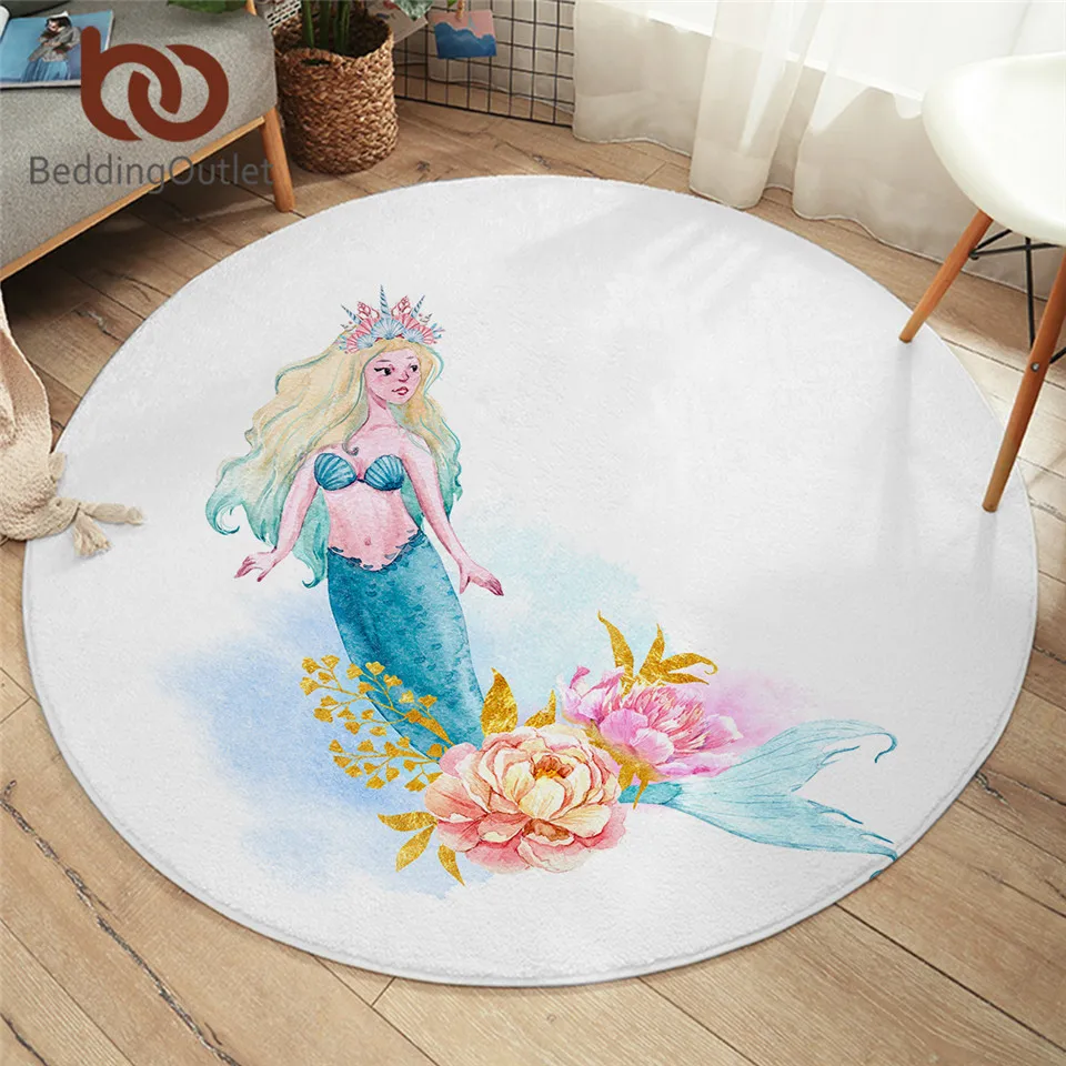 Постельные принадлежности, напольный коврик для спальни с русалочкой, круглый ковер принцессы, акварельный коврик с мультяшным рисунком, цветочный ковер для девочек, гостиная, альфомбра, 1 шт.