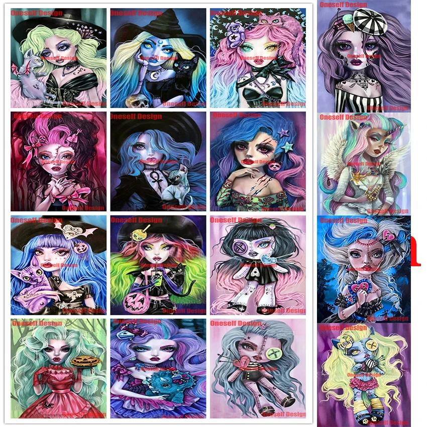 Алмазная живопись полностью круглаяквадратная мультяшная девушка 5d...