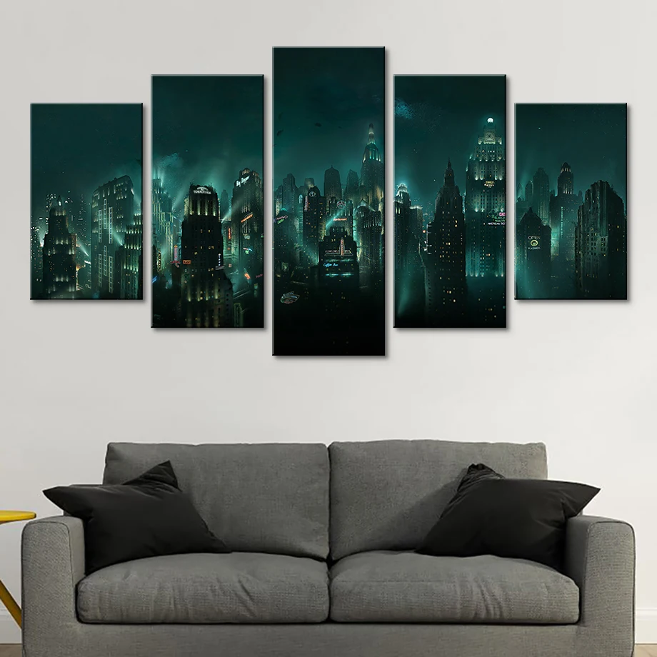 Картина с изображением ночного вида, 5 панелей, Bioshock, модульные абстрактные картины, игровой постер, настенное искусство, картины, домашний декор, HD-принт