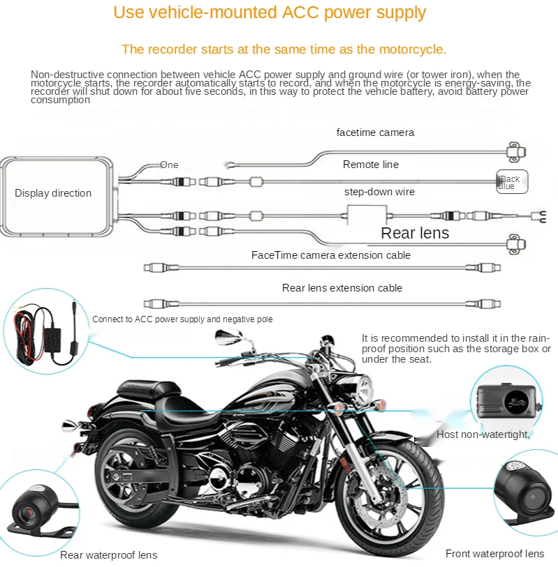 Видеорегистратор для мотоцикла SE100, 3,0 дюйма, 1080P HD, два объе...