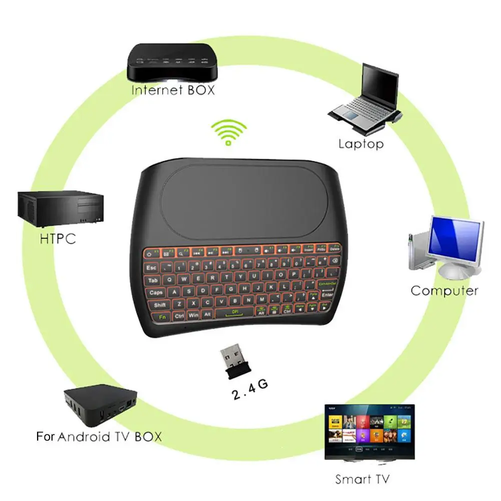 Подсветка D8 мини красочные 3 в 1 Английский 2,4 ГГц Беспроводной клавиатура Air Мышь Сенсорная панель контроллер для Android ТВ коробка Новый