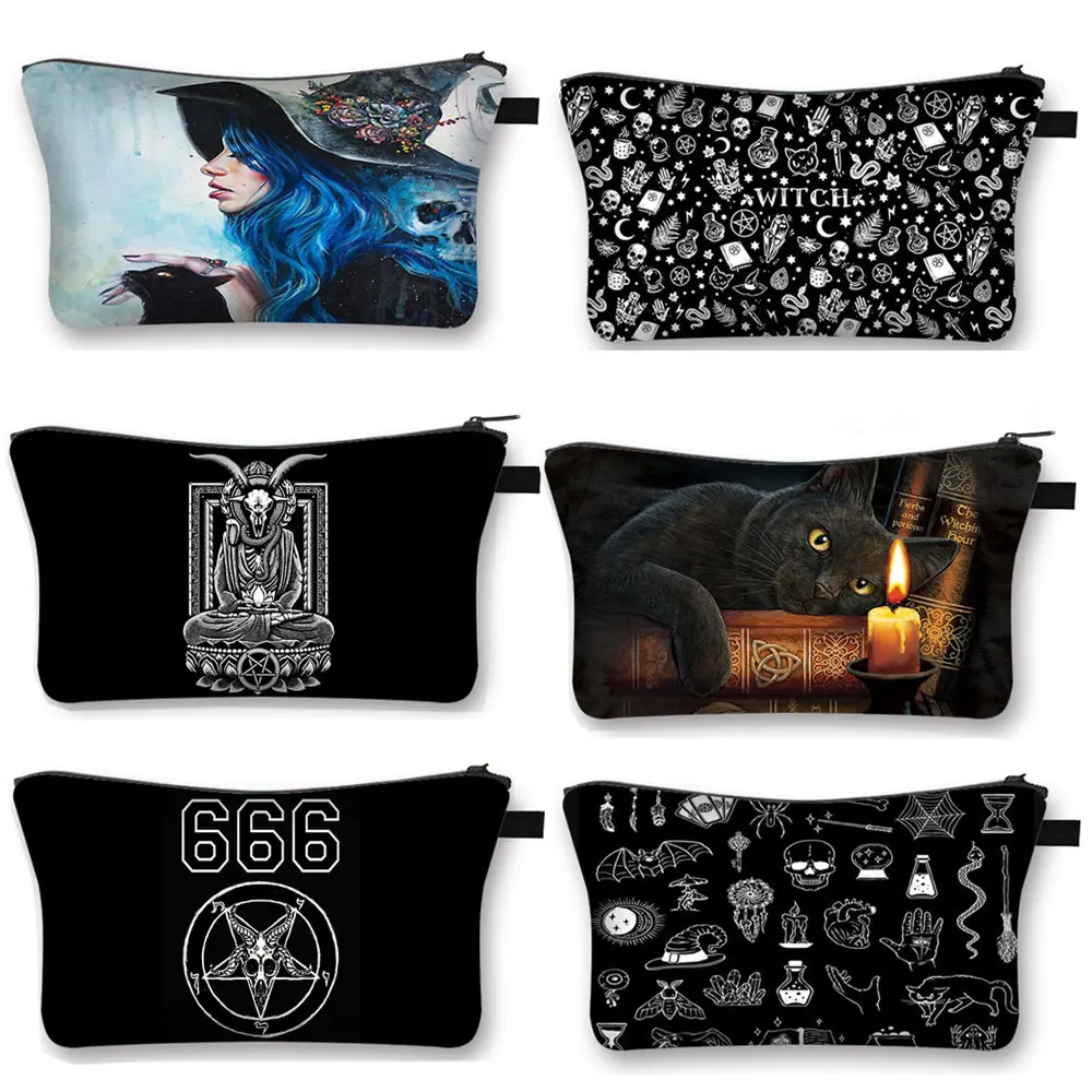 Женский чехол-органайзер с ведьмойчерной кошкойискусственной кожей 666 Witchcrat Baphomet