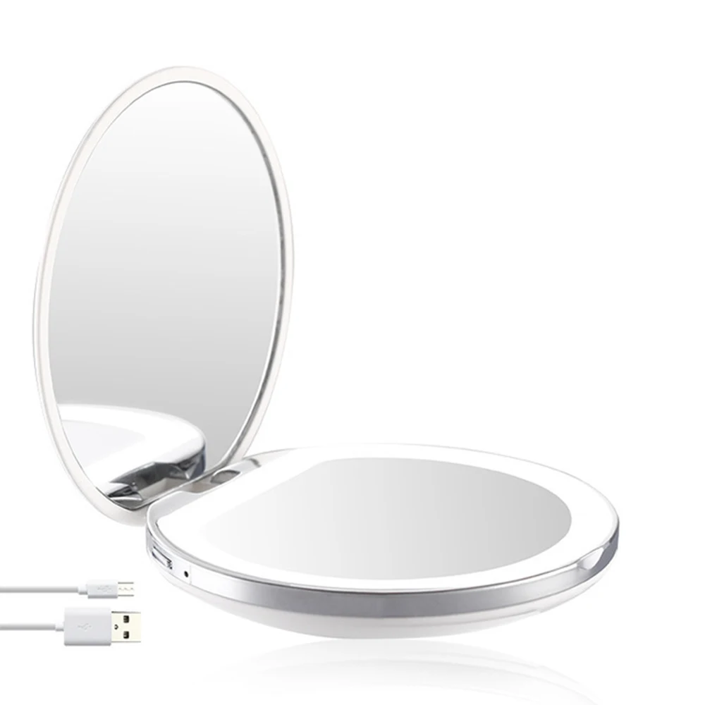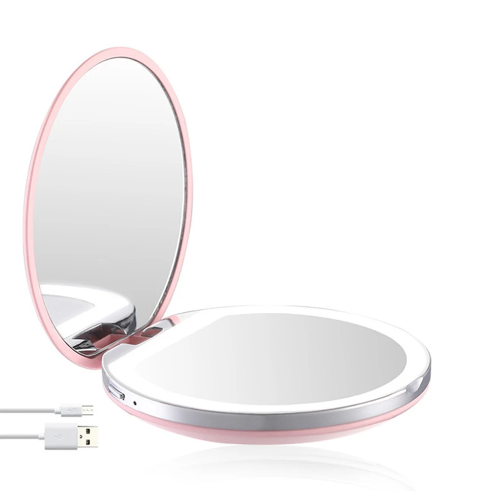 Увеличительное зеркало для макияжа, миниатюрное круглое портативное зеркало для макияжа со светодиодной подсветкой, с зарядкой от Usb