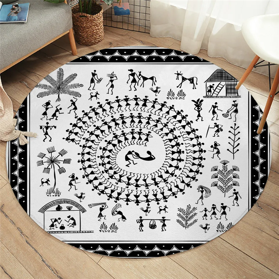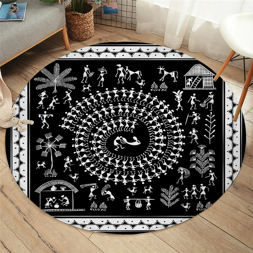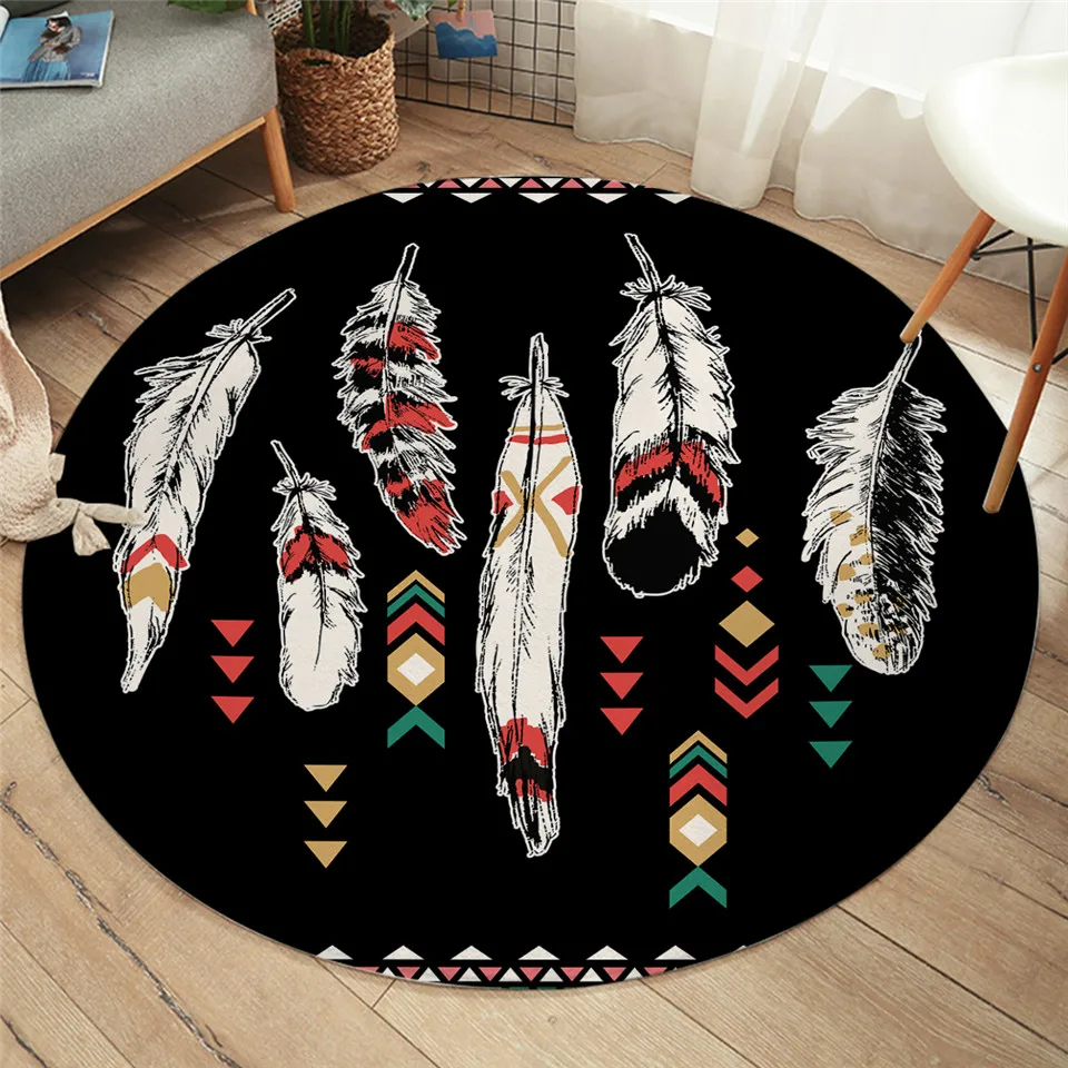 Постельные принадлежности, перьевая спальня, напольный коврик, этнический круглый ковер, черный этнический ковер, нескользящая богемная гостиная, Alfombra, 100 см