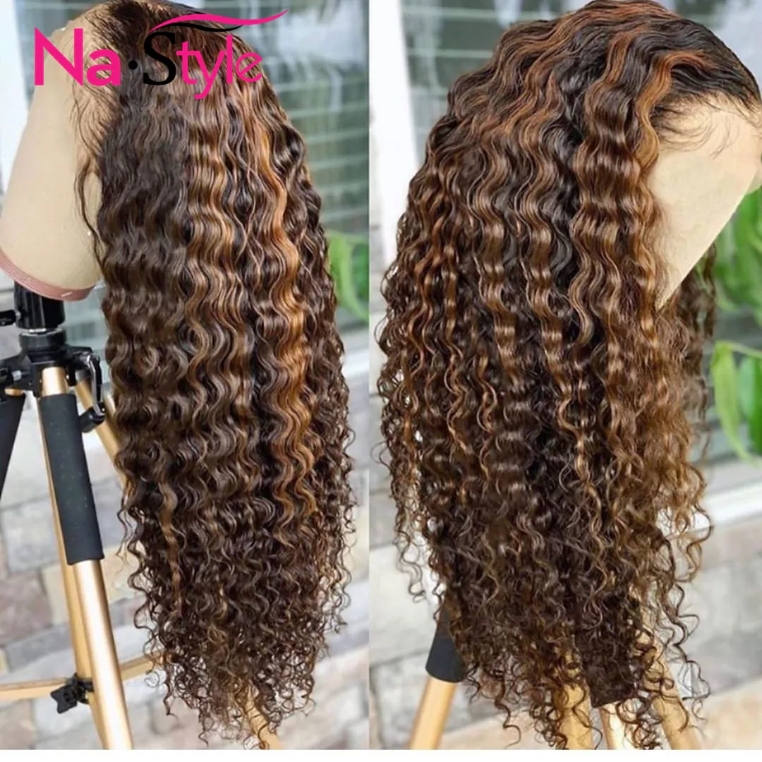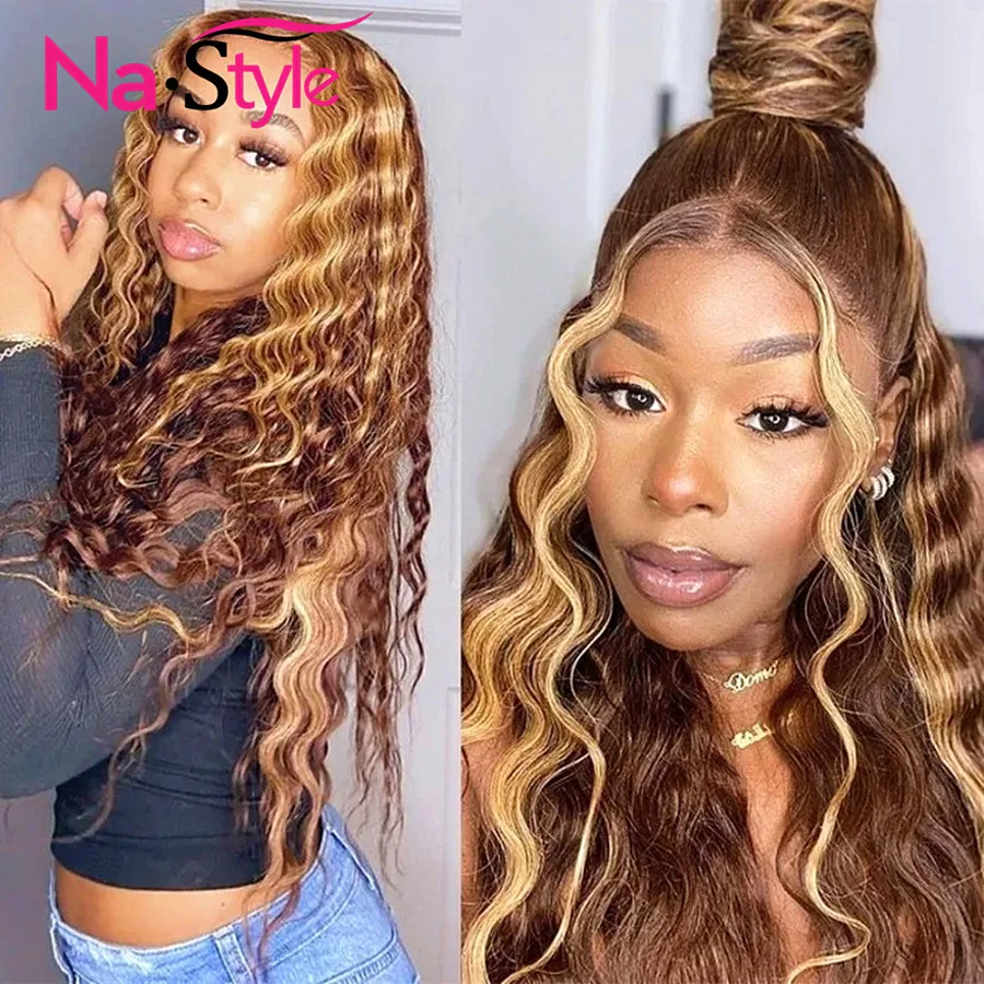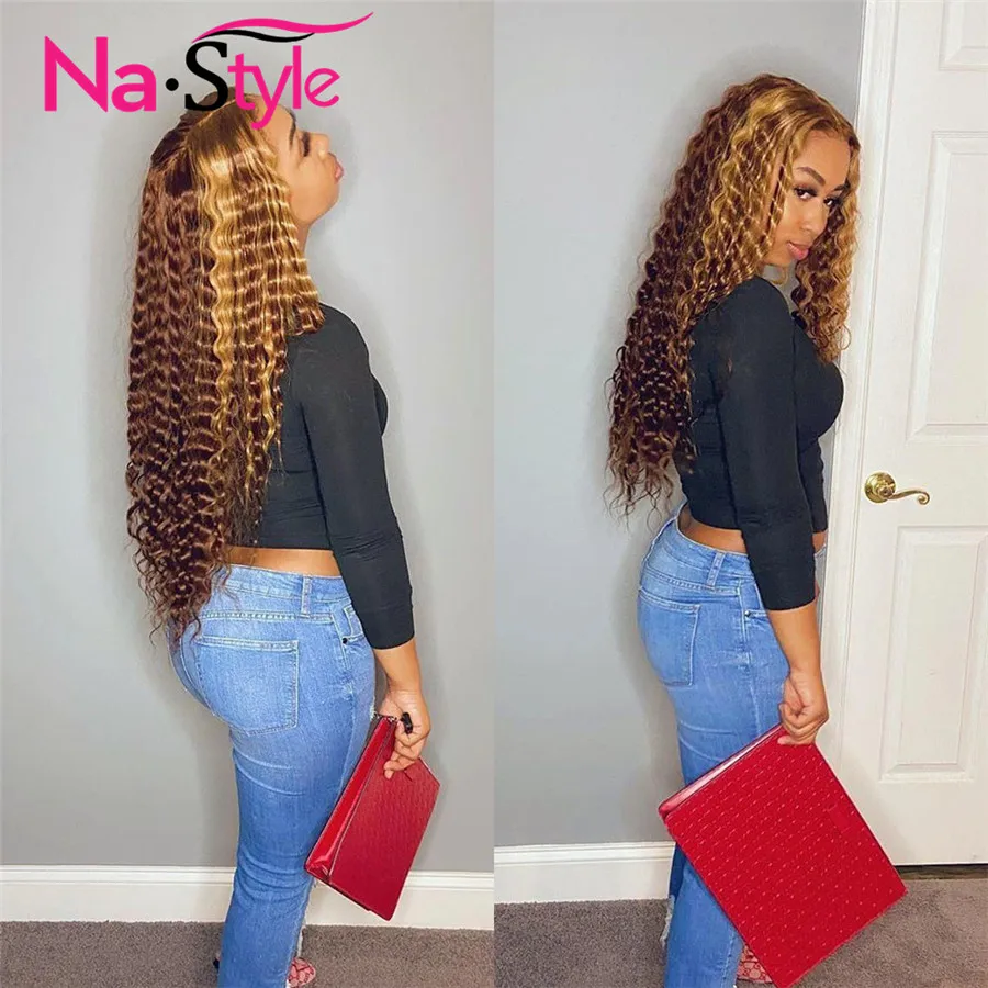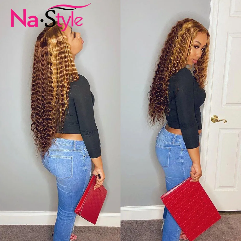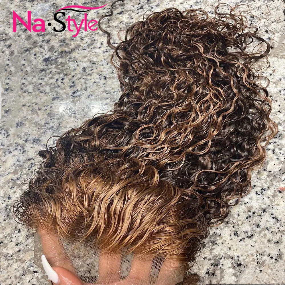 Парик из вьющихся человеческих волос, медовая блондинка, Омбре, бразильский коричневый цвет, 150%, глубокая водная волна, полный фронтальный хайлайтер, Боб T, парики на сетке