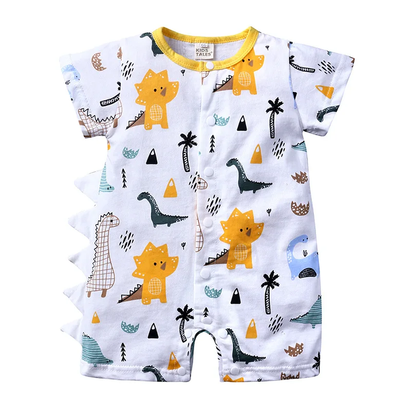 Летний костюм унисекс с короткими рукавами для маленьких мальчиков и девочек, одежда для новорожденных от 3 до 24 месяцев, хлопковая одежда с милым динозавром для младенцев Roupas de bebe