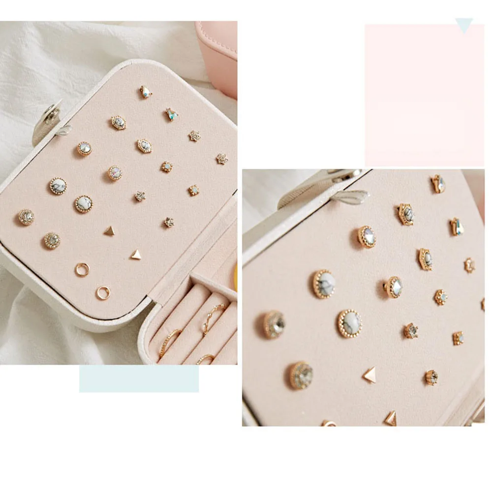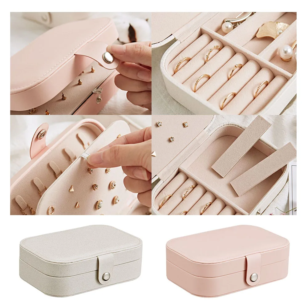 Дорожный органайзер для бижутерии Дисплей Путешествия Ювелирные изделия Чехол коробки Портативный ожерелье кольцо бокс кнопку кожаный ящик для хранения ювелирных изделий ювелиров