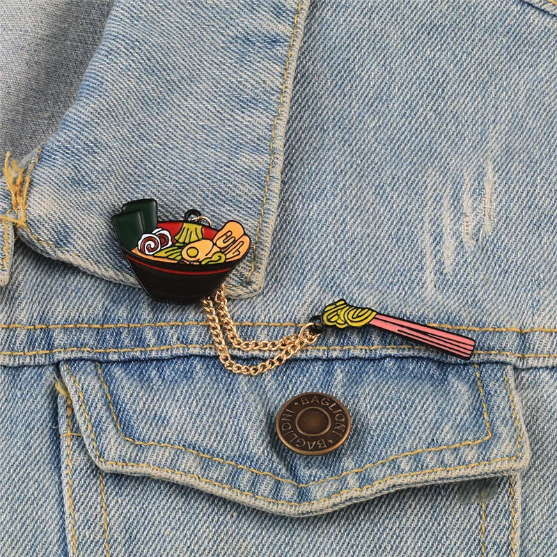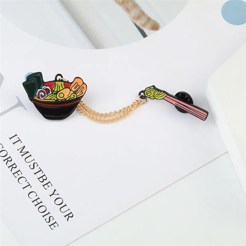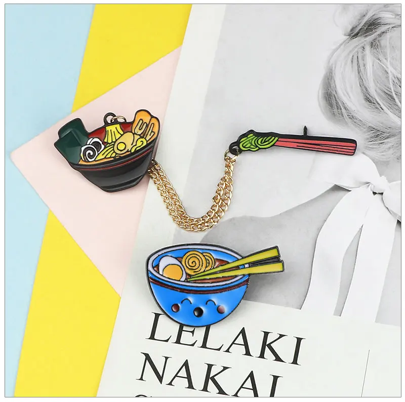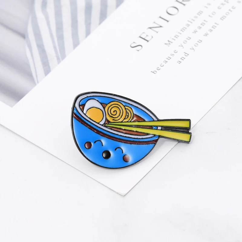 Мультяшная брошь в японском стиле в виде рамен, значки в виде смайлика, лапши, индивидуальные эмалированные значки, булавки для сумок, одежды, булавка на лацкан, модная Подарочная бижутерия для еды