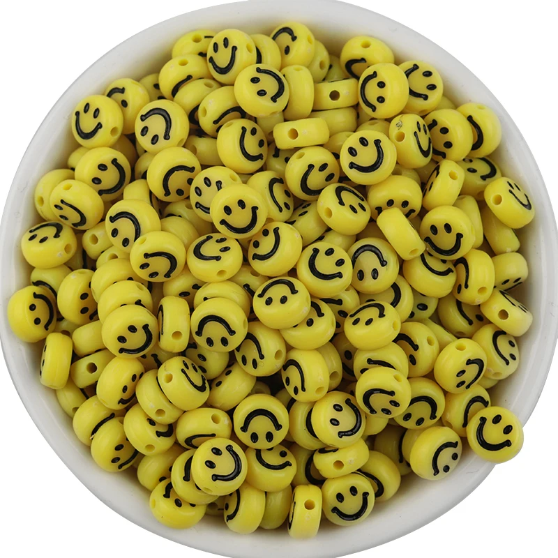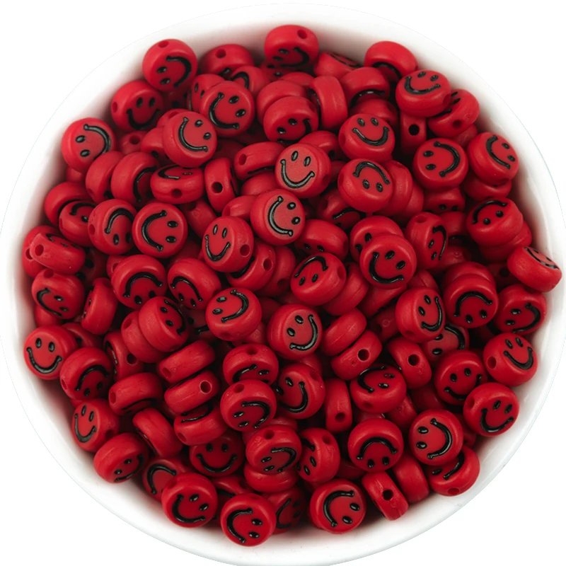Акриловые смайлики 100 шт., смайлики, однотонные бусины, ювелирный материал для изготовления ожерелий, браслетов, фурнитура для ювелирных изделий 1,3 мм