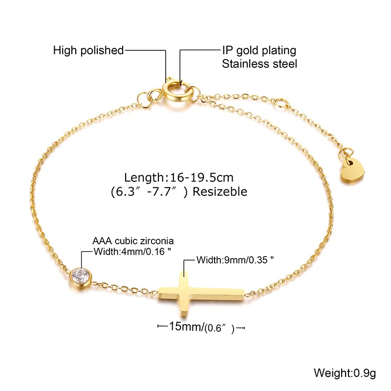 Vnox нежный боком браслеты с крестообразной подвеской для Для женщин, не вызывают аллергию, Нержавеющаясталь тонкие цепочки, браслет, ювелирные изделия, 16-19,5 см