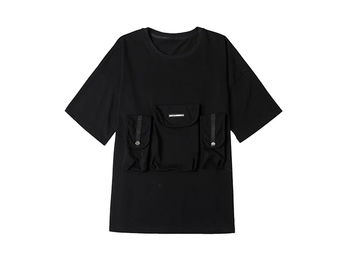 Рубашка в стиле Харадзюку 11 BYBB'S DARK Футболка мужская хип-хоп, уличная одежда со множеством карманов, с коротким рукавом, черная, в стиле Харадзюку, на лето