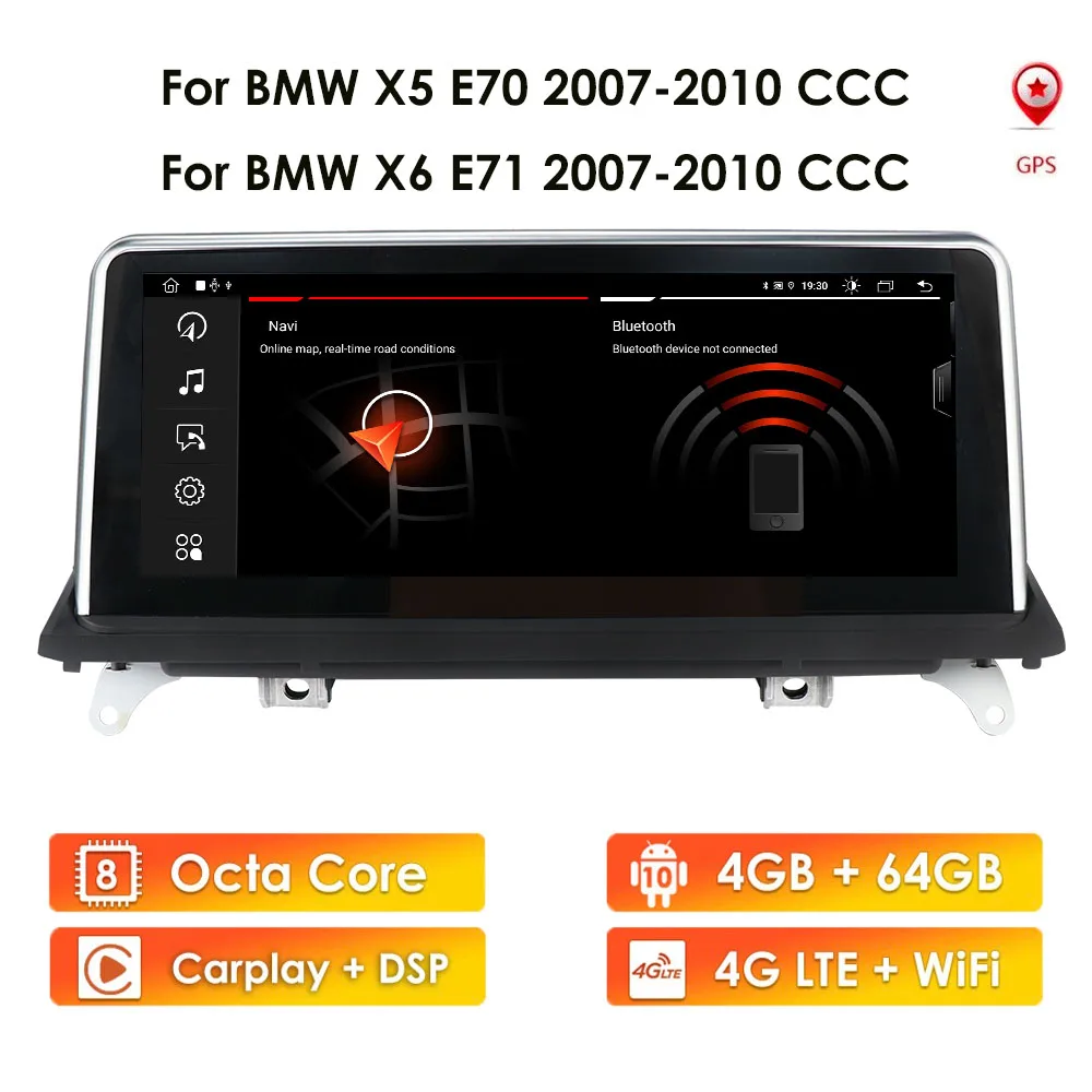Автомобильный радиоприемник IPS 4G 64 ГБ Android 10 для BMW X5 E70 X6 E71 2007-2010 мультимедийный оригинальный CCC CIC GPS Навигация Аудио экран стерео