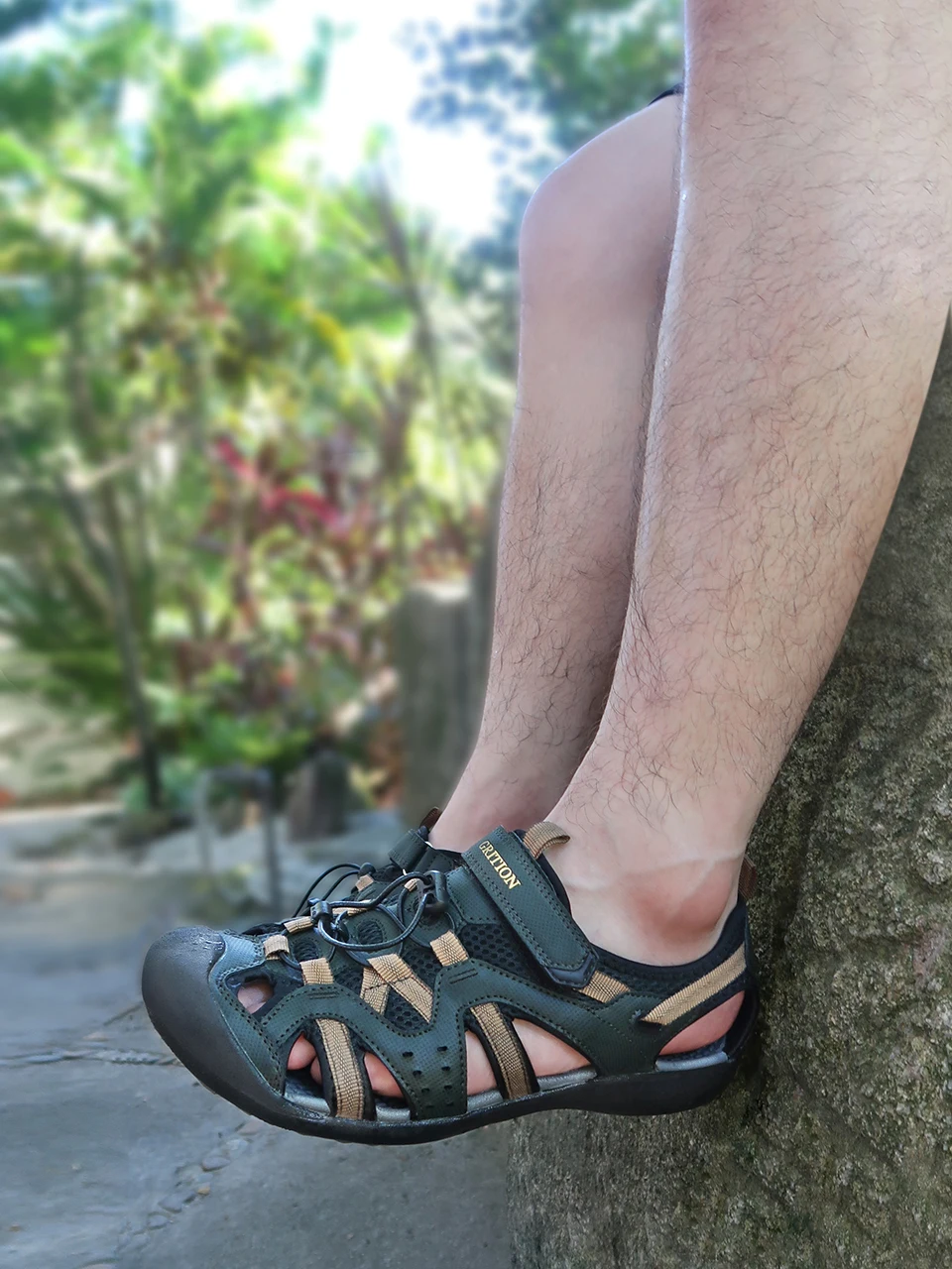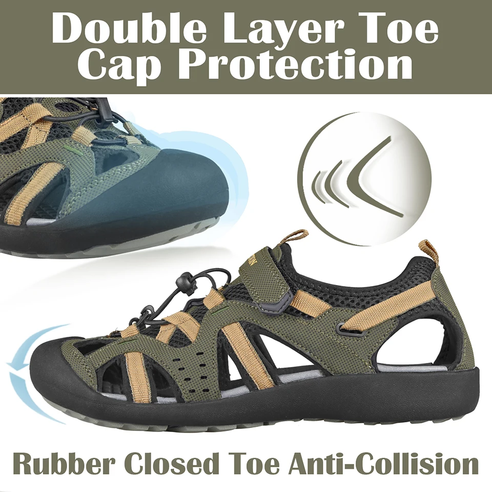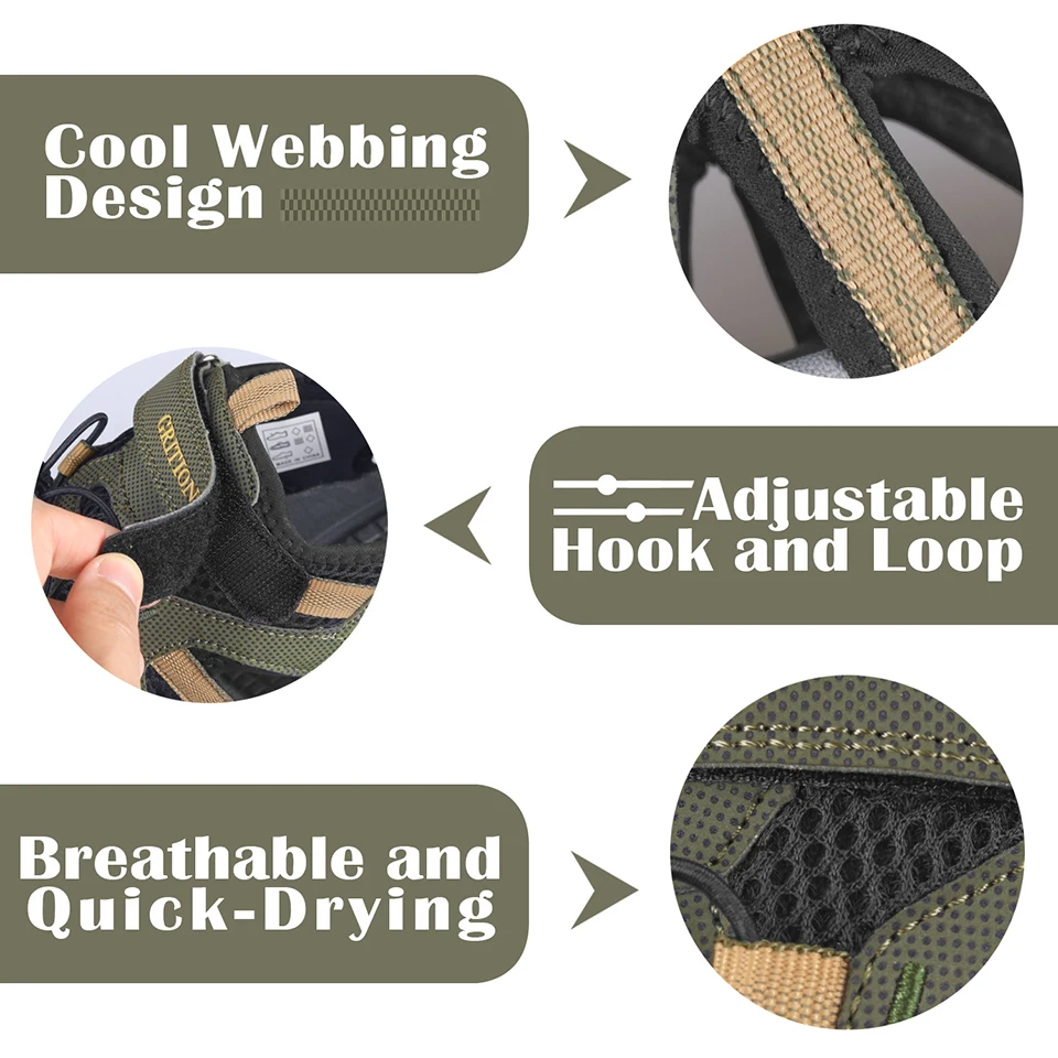 [Дышащие] Эти уличные Сандалии выполнены из полиуретана и тесьмы. Верх из мягкой сетки впитывает влагу, быстро сохнет и улучшает воздухопроницаемость. Обеспечьте прохладу и комфорт на весь день. Это отличный выбор повседневной одежды, пляжа, прогулок, скалолазания, походов, рыбалки, отслеживания рек и других водных видов спорта.