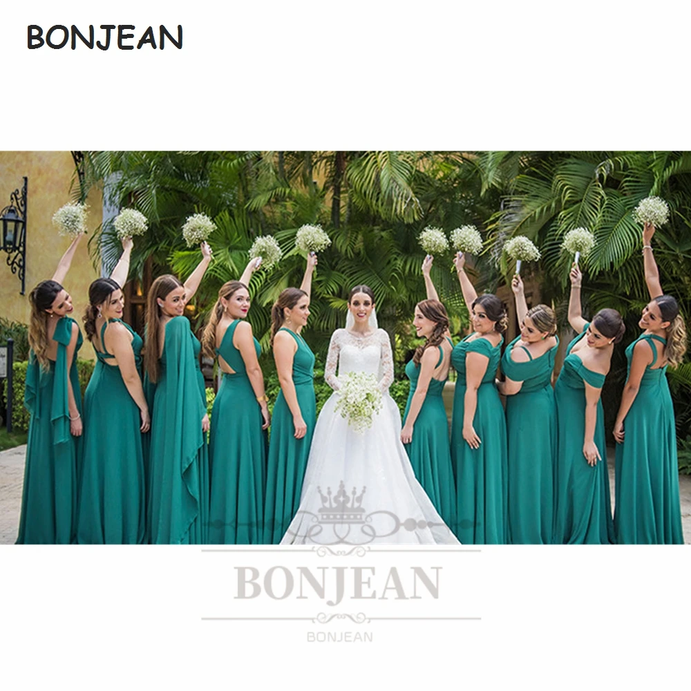 Шифоновое платье невесты, изумрудно-зеленое, ТРАПЕЦИЕВИДНОЕ, черное, на шнуровке, для девочек, для подружек невесты, 2021