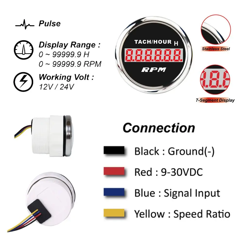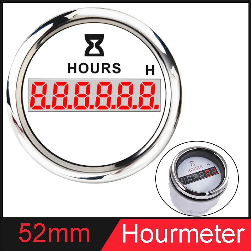 Счетчик моточасов для автомобильного инструмента Цифровые счетчики часов 52 мм 0-99999.9H Дисплей Водонепроницаемые часы Манометр 9-32 В
