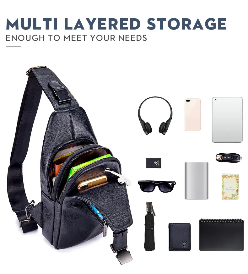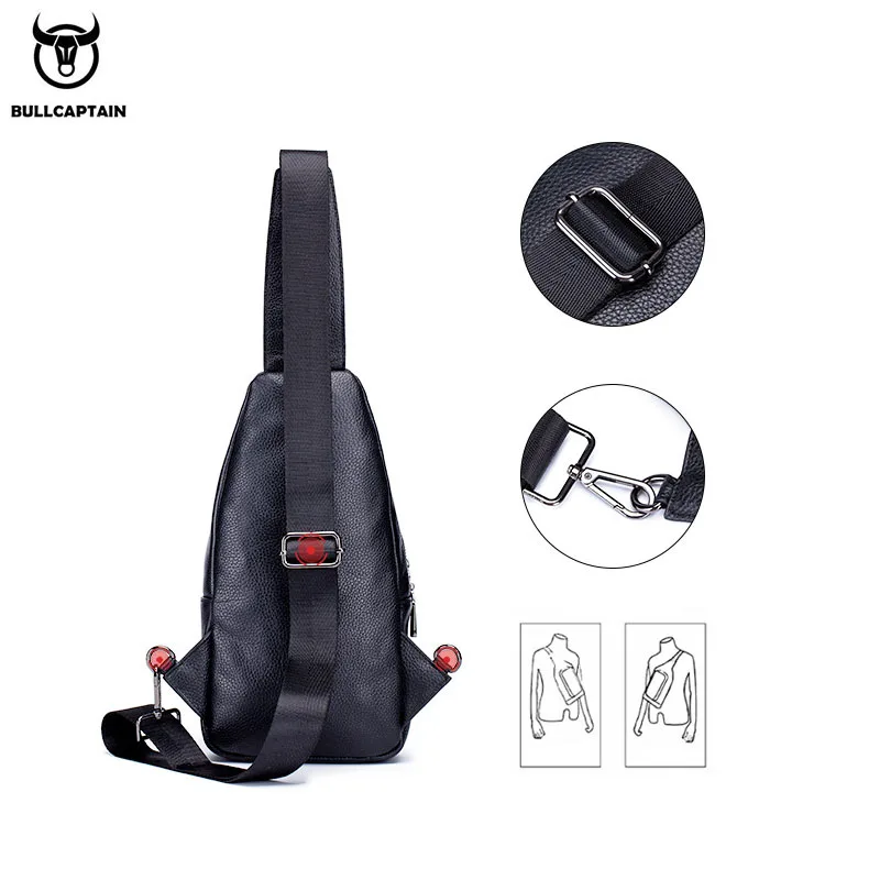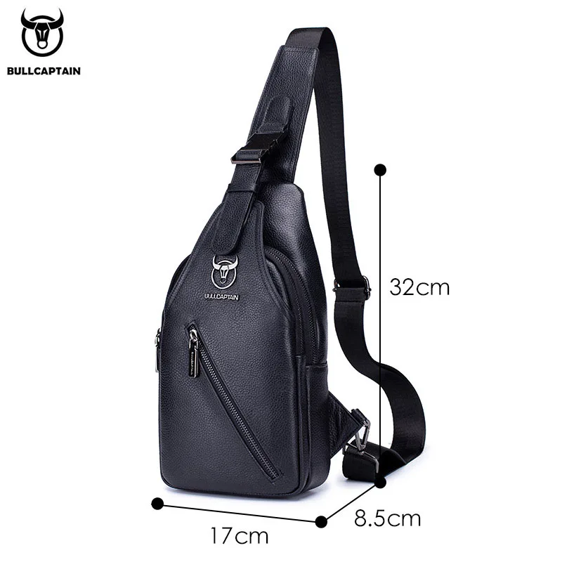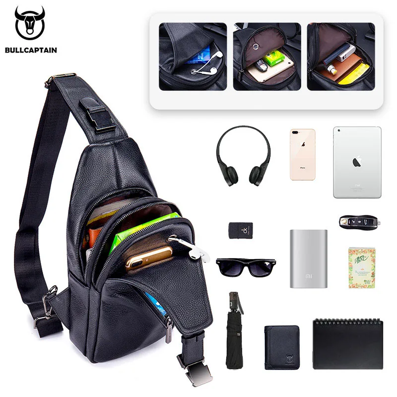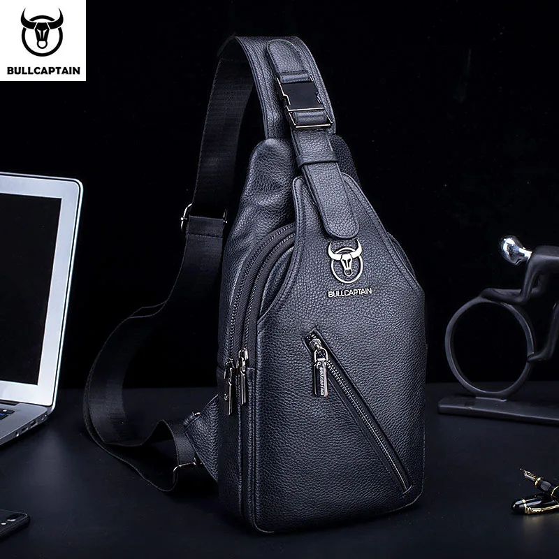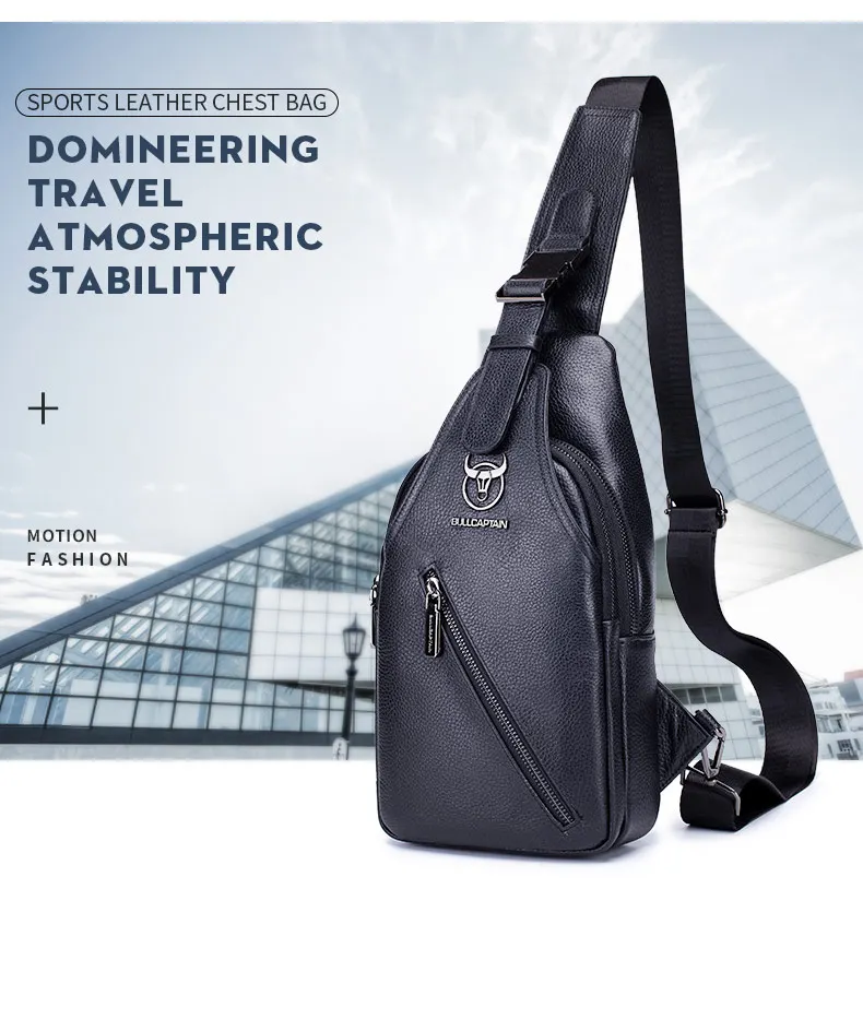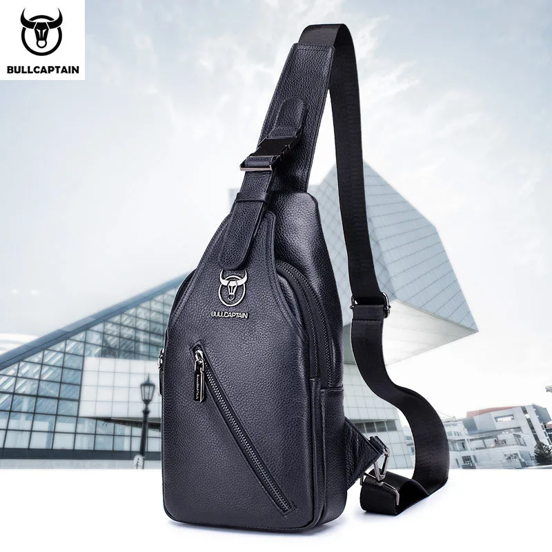 Кожаная нагрудная сумка BULLCAPTAIN Мужская, деловая модная диагональная многофункциональная сумочка на плечо с узором Личи, большой вместимости
