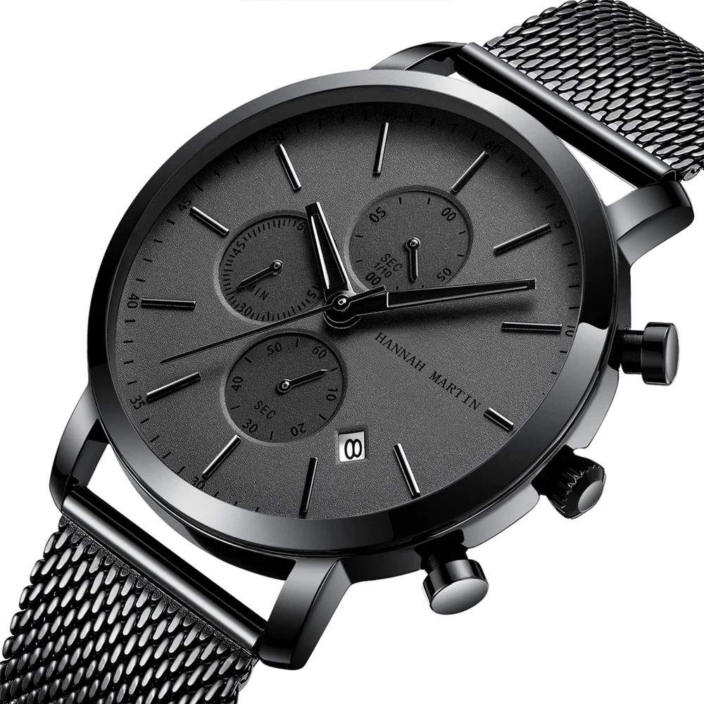 Часы наручные мужские с маленьким циферблатом, брендовые модные многофункциональные деловые водонепроницаемые из нержавеющей стали с сетчатым браслетом
