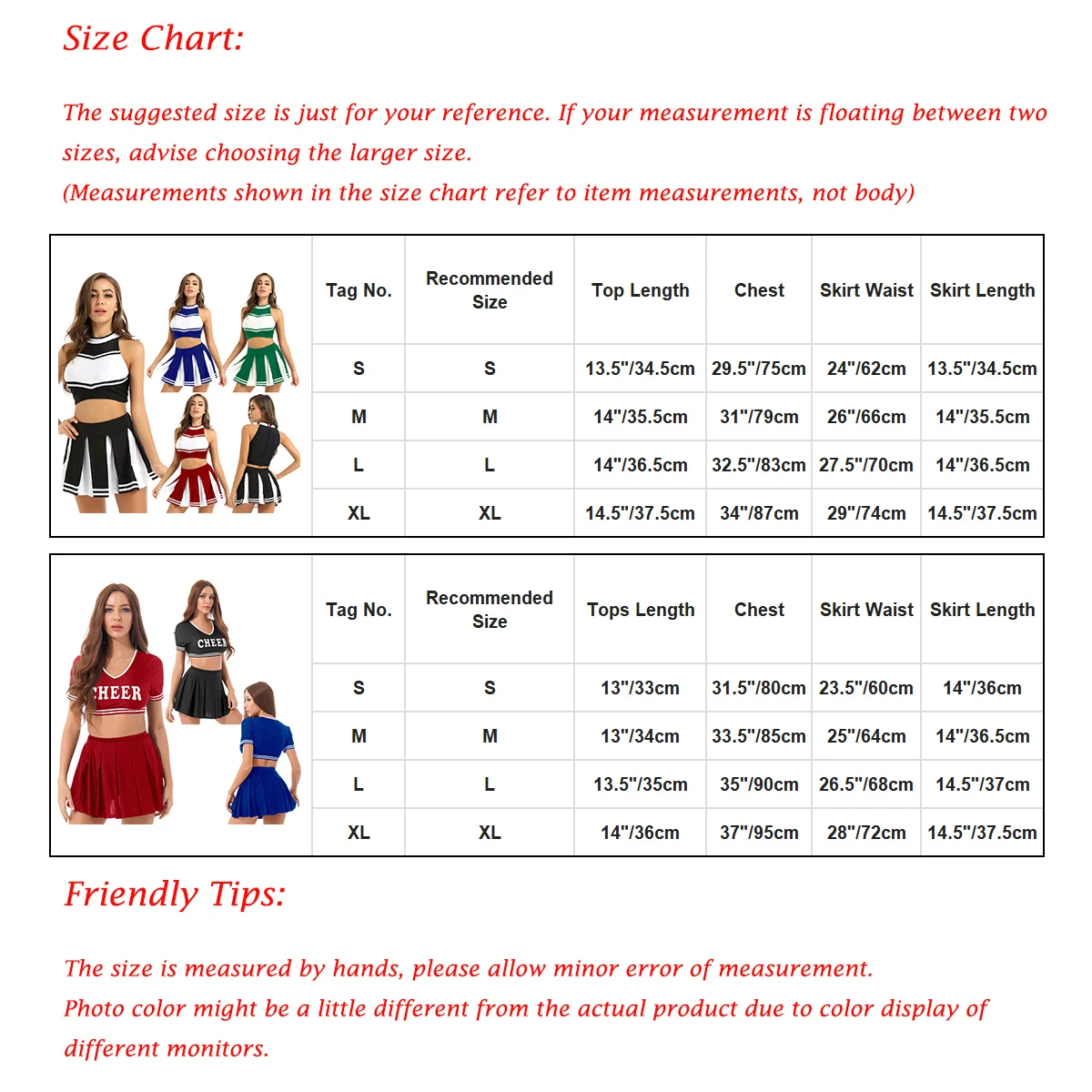 Женский костюм болельщика для взрослых; Одежда для костюмированной вечеринки; Цвет блока; Шикарный и стильный.Воротник-стойка и укороченный топ без рукавов, скрытая застежка-молния сзади. Сочетающаяся с широким эластичным поясом мини плиссированная юбка с белыми полосками на подоле.Хорошая эластичная ткань, мягкая и удобная в носке, отлично подчеркивает ваши вечерние и спортивные мероприятия.Хороший выбор для нарядов, ролевых игр, сценических костюмов, карнавала, танцев, соревнований по танцам и т. д.Для получения подробной информации о размерах обратитесь к описанию товара. Ручная стирка в холодной воде.
