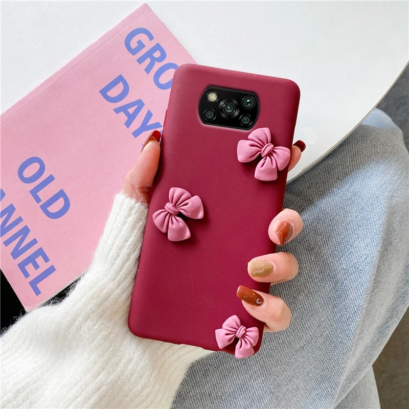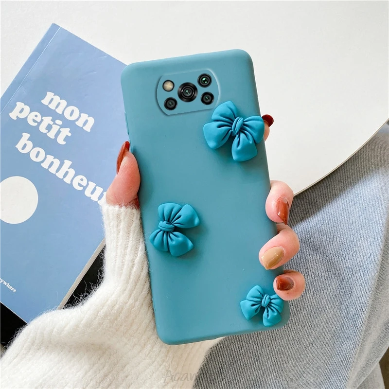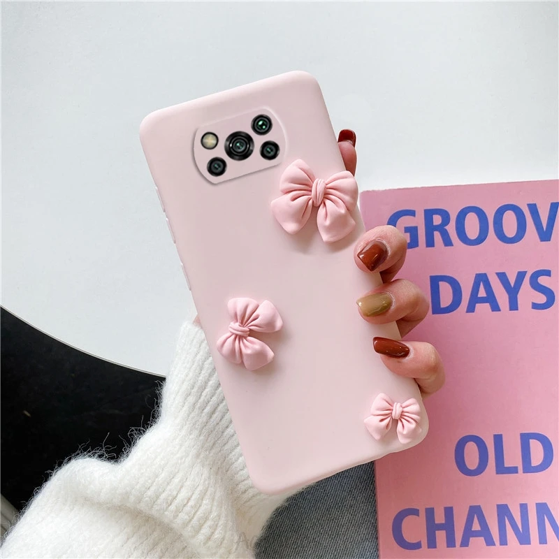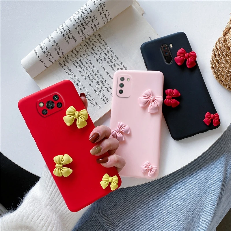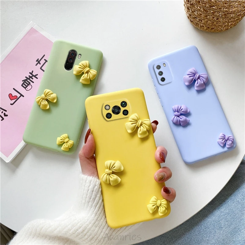 Силиконовый чехол карамельного цвета с 3d бантом для Xiaomi Mi Poco X3 Nfc M3 X2 F2 M2 Pro Pocophone F1, Мягкая матовая задняя крышка из ТПУ