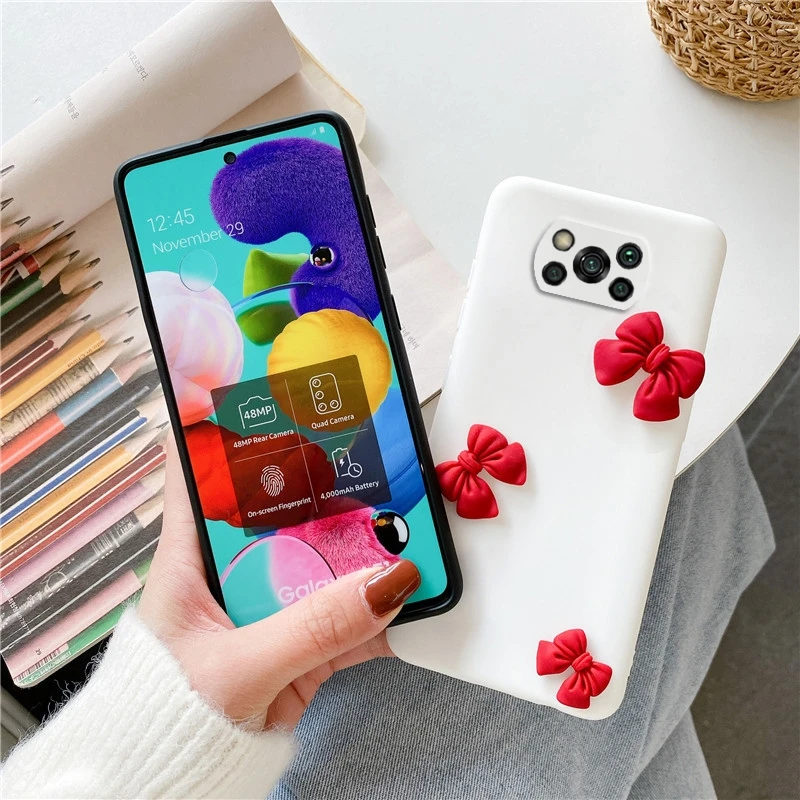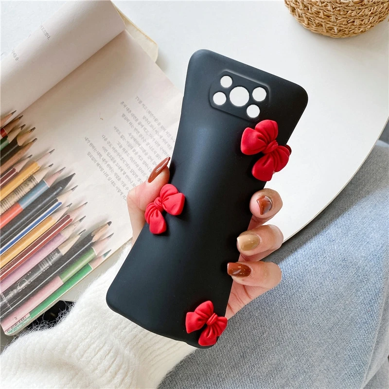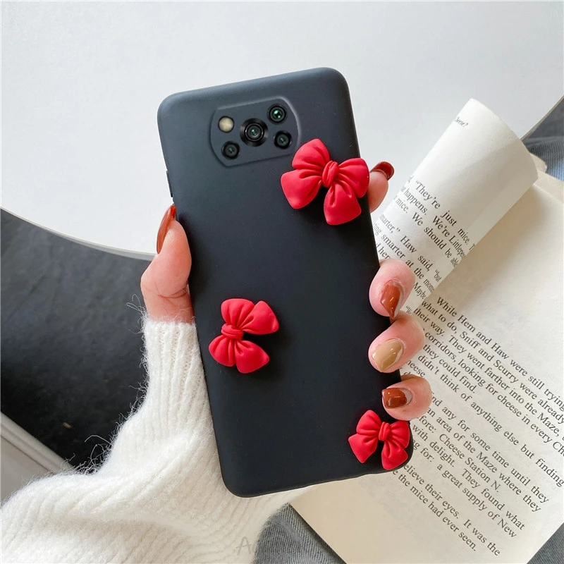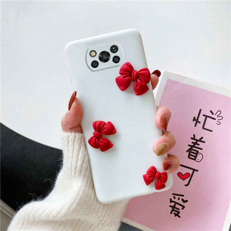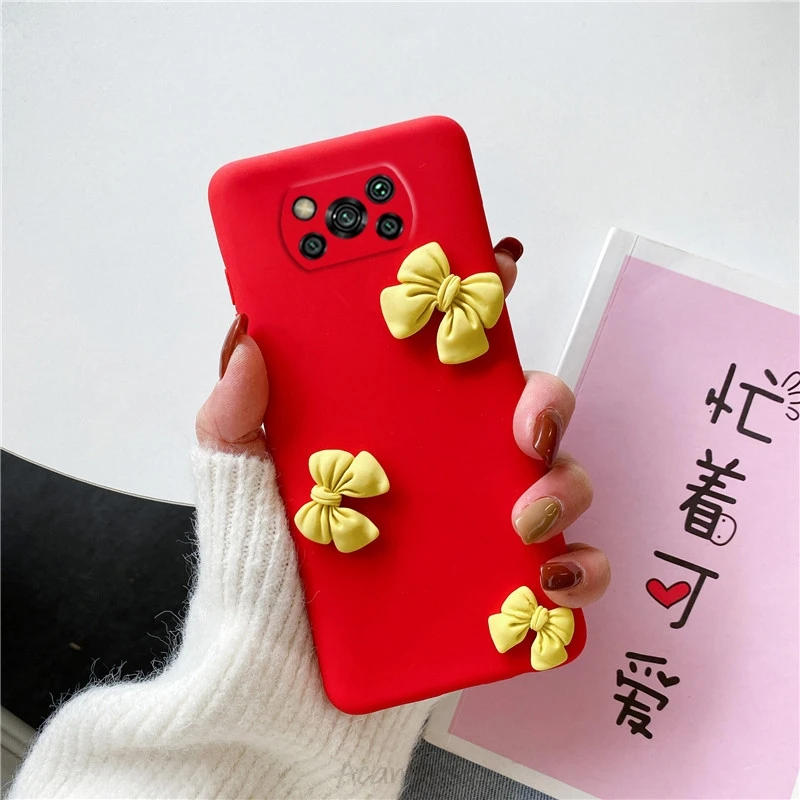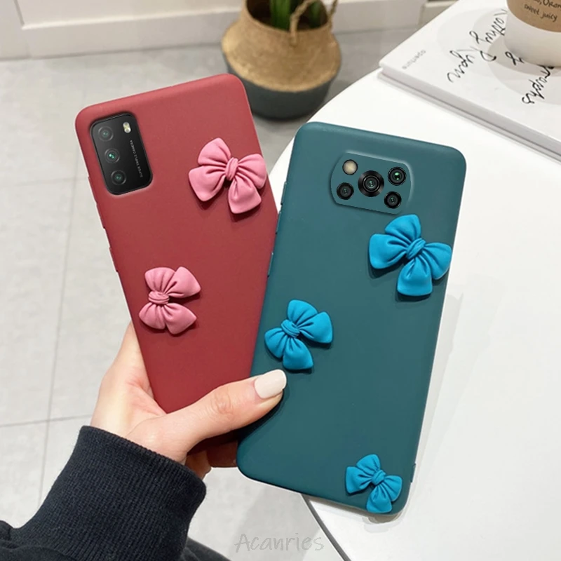 Силиконовый чехол карамельного цвета с 3d бантом для Xiaomi Mi Poco X3 Nfc M3 X2 F2 M2 Pro Pocophone F1, Мягкая матовая задняя крышка из ТПУ