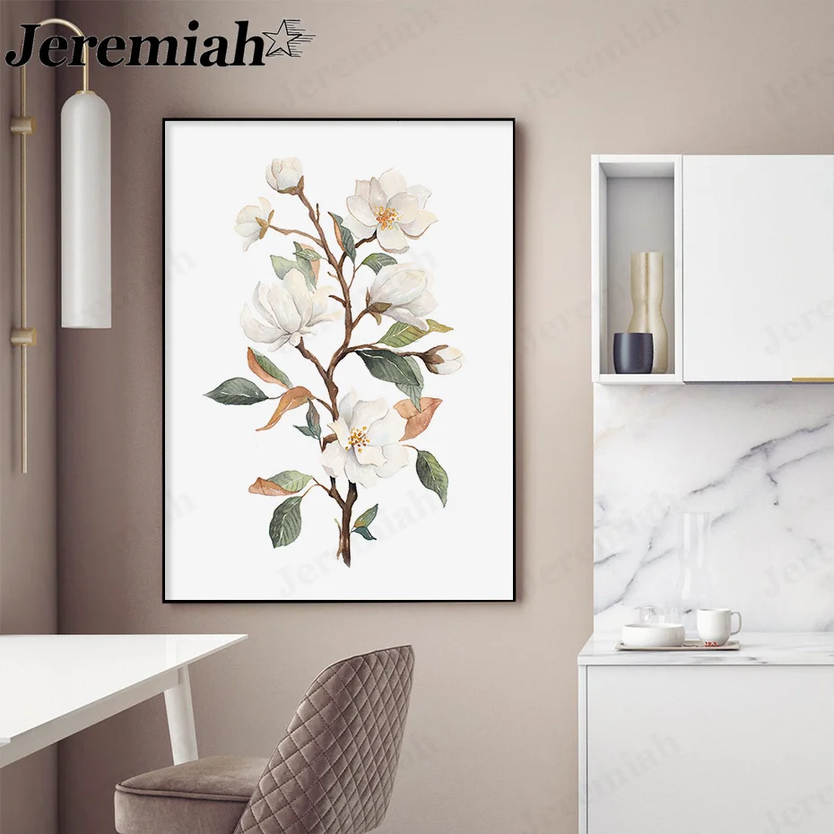Современный Цветочный Холст плакат Цветущая белая картина Магнолия настенное искусство современный пос...