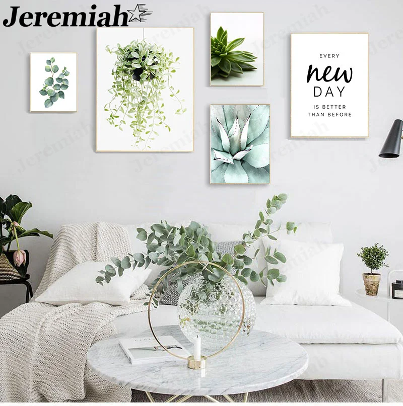 Современные зеленые посадки Холст плакат простой цветок натюрморт Живопись стены искусства н...