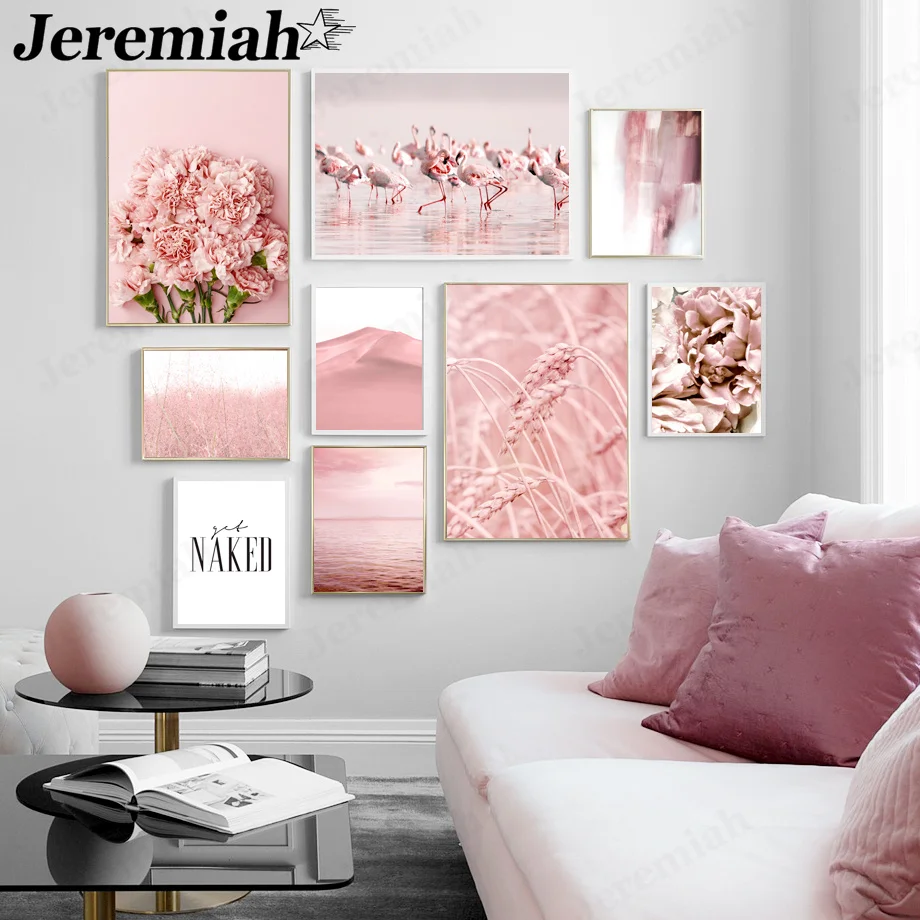 Скандинавский цветочный холст постер Розовый фламинго пшеничный Алфавит картина настенное искусство Moder...