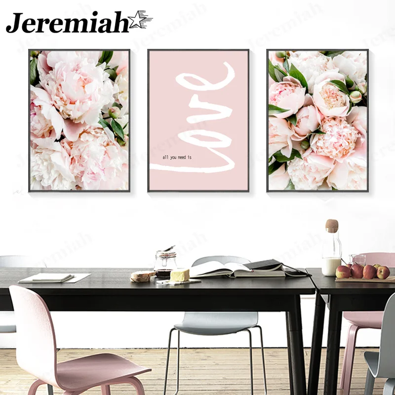 Скандинавский цветок растение холст постер розовая роза цветок письмо живопись настенный художественный режим...