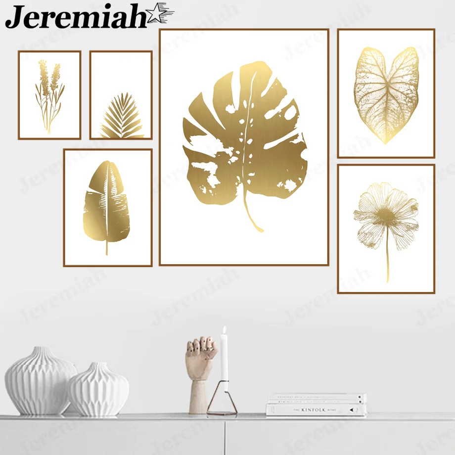 Скандинавский полый холщовый постер с золотыми листьями Monstera пшеничная картина настенное искусство современный...