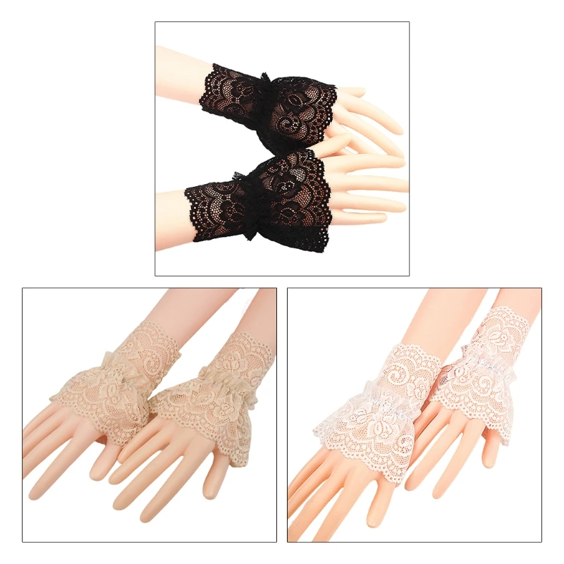 1 пара полых вязаных цветочных кружевных манжет на запястье с оборками Съемные браслеты с искусственными рукавами F3MD