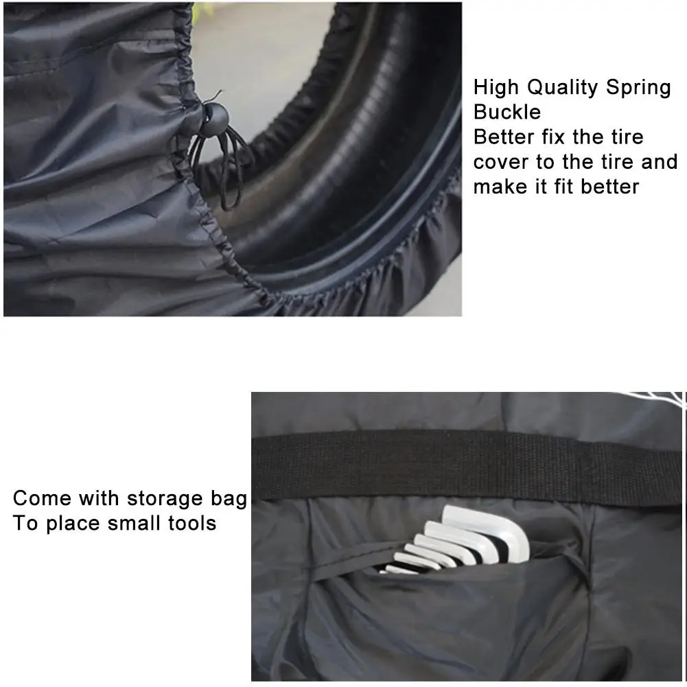 1. Высококачественный материал: Этот чехол для шин изготовлен из ткани Оксфорд, ветрозащитный, водонепроницаемый и пыленепроницаемый. Это идеальный сезонный чехол для защиты шин или запасной чехол для защиты шин, который легко защищает шину от загрязнений и предотвращает загрязнение вашей одежды и интерьера автомобиля.