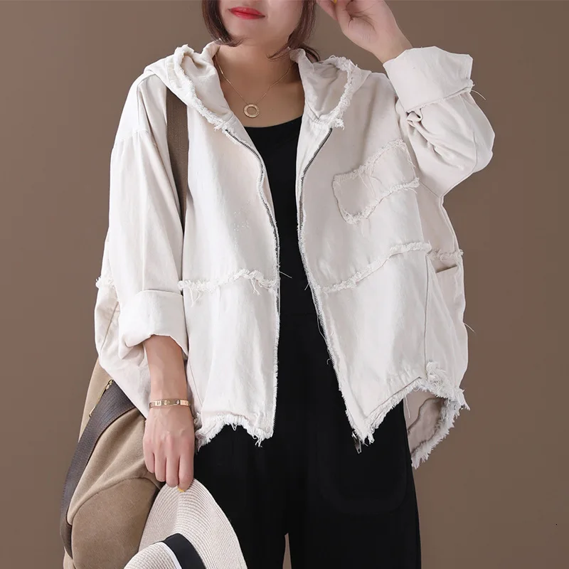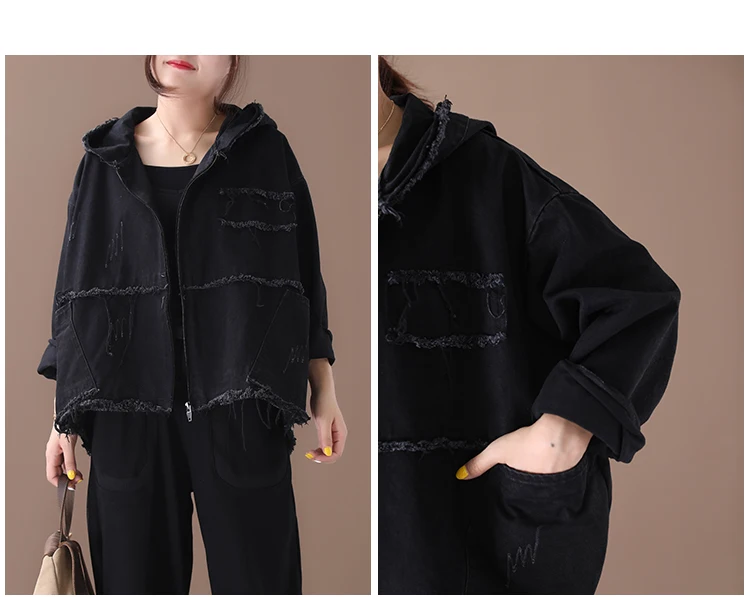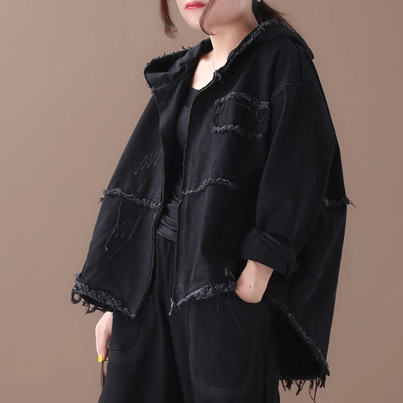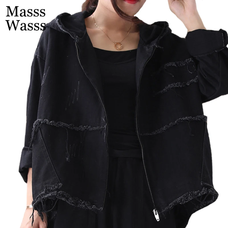 Masss Wasss 2021 дизайнерские весенние женские черные джинсовые куртки женские повседневные пальто с капюшоном рваные женские панк уличная одежда большого размера
