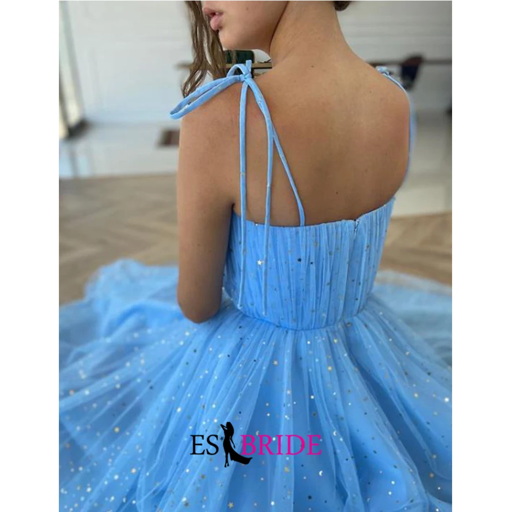 Синие и серые вечерние платья с оборками, сексуальное Тюлевое плать...