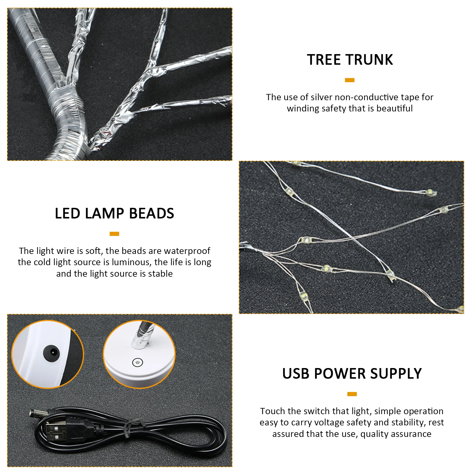 5. Светильник с весом и гибким декором для дома-это светильник для дерева бонсай, портативный, легко перемещается в гостиную, кабинет, главную комнату, спальню. Этот ночной светильник идеально подходит для свадьбы, Рождества, Нового года, вечерние украшения. Это Ночной светильник, необходимый для украшения детей, безопасности и энергосбережения в спальне.