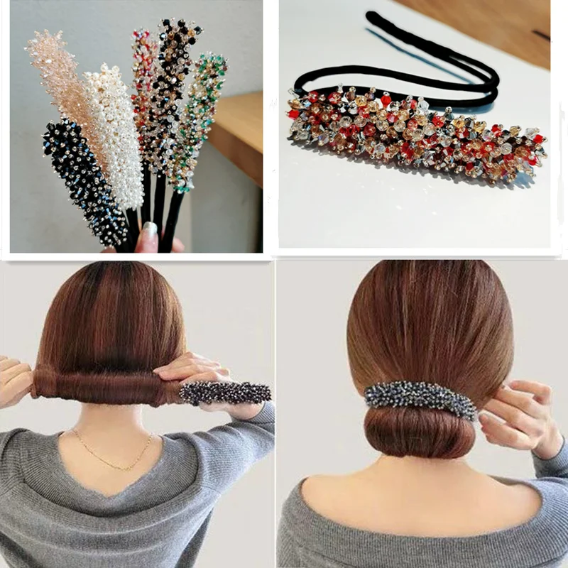 Фен для волос с жемчужной головкой, Женский инструмент сделай сам для создания булочек с цветами, пончиками, большой критальной лентой, инструменты для укладки волос сделай сам, аксессуары для волос