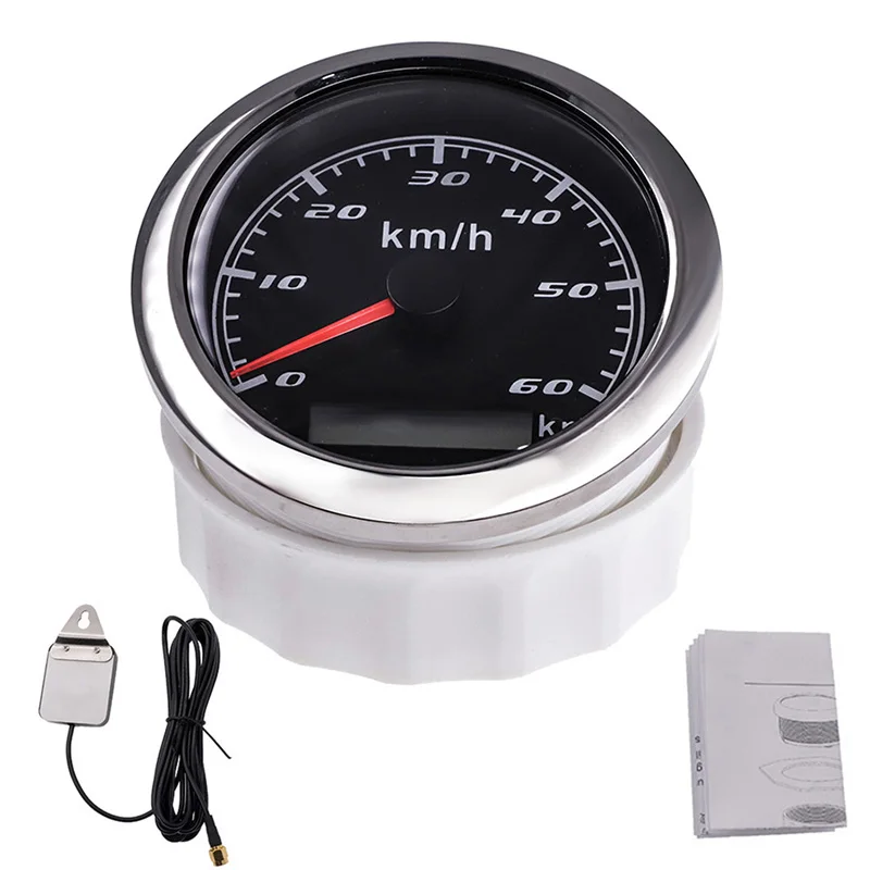 Подсветка 12V 24V с GPS антенна, Универсальный 85 мм GPS-спидометр 60 км ч 120 км ч, Для автомобиля Грузовик Лодка Мотор Авто, С красной подсветкой 12В 24В, С антенной GPS